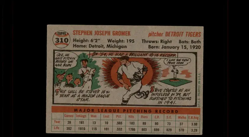 1956 Topps #310 Steve Gromek - (pk-tl2) - Detroit Tigers