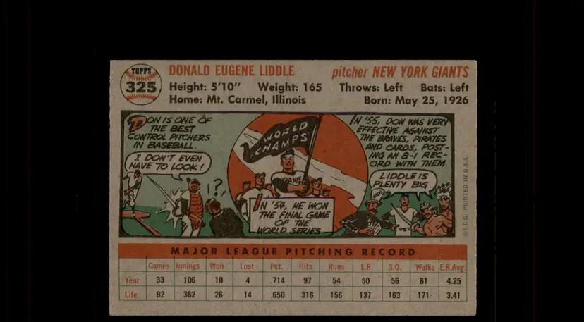 1956 Topps #325 Don Liddle - (pk-tl2) - New York Giants