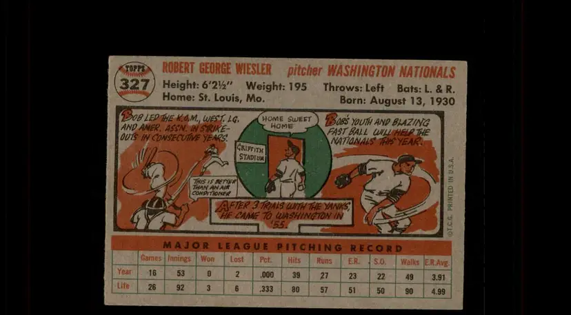 1956 Topps #327 Bob Wiesler - (pk-tl2) - Washington Senators