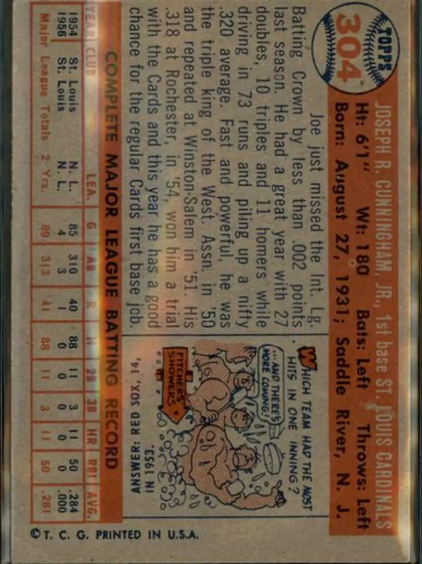 1957 Topps #304 Joe Cunningham - ( pk1 ) - St. Louis Cardinals