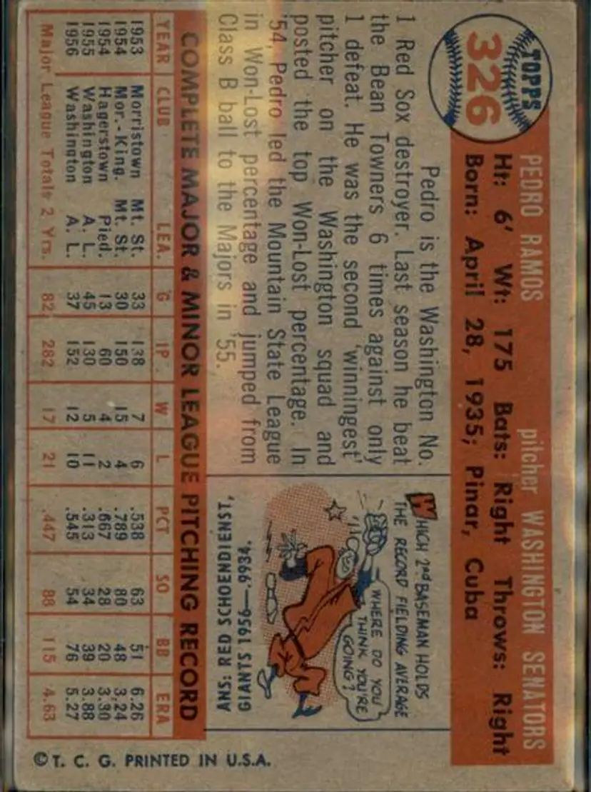 1957 Topps #326 Pedro Ramos - ( pk1 ) - Washington Senators