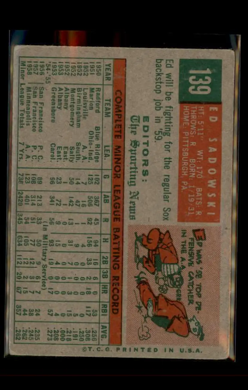 1959 Topps #139 Ed Sadowski - (pk4) - Boston Red Sox