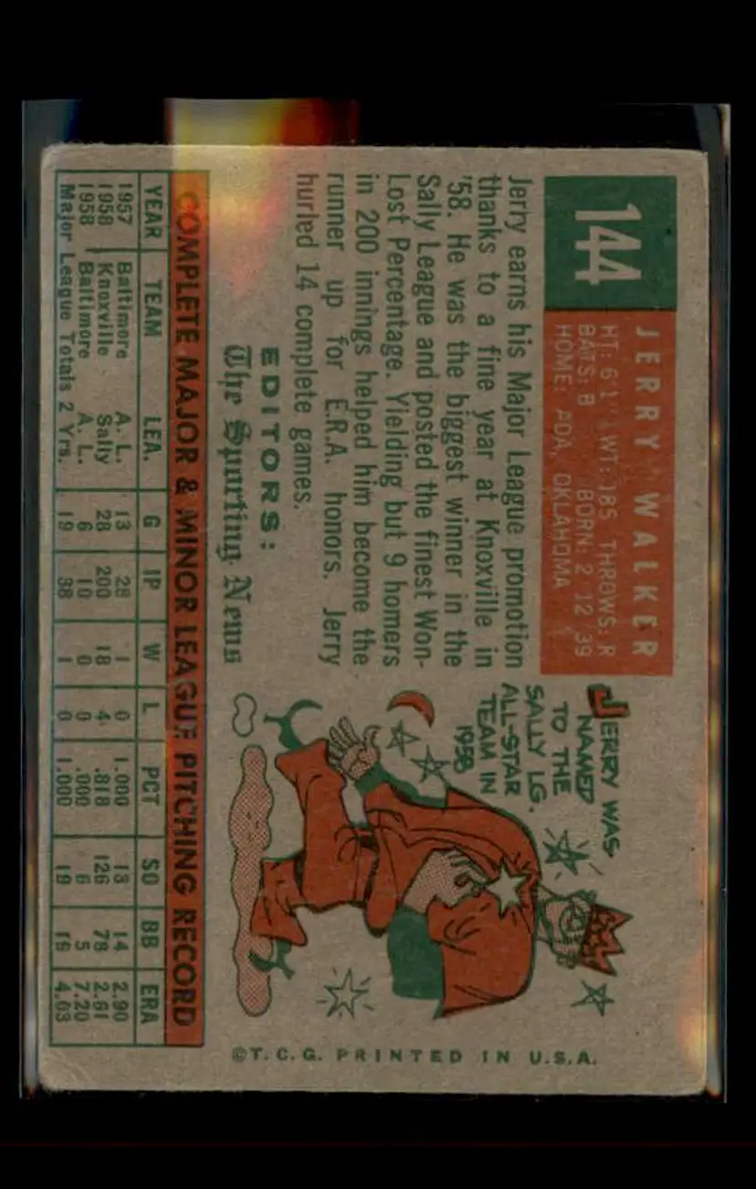 1959 Topps #144 Jerry Walker - (pk4) - Baltimore Orioles