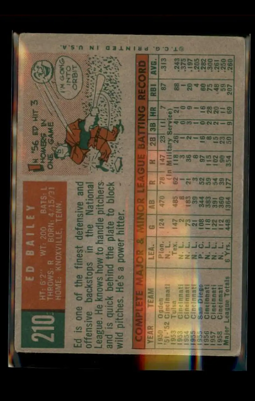 1959 Topps #210b Ed Bailey - (pk4) - Cincinnati Redlegs