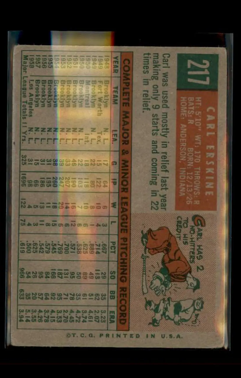 1959 Topps #217b Carl Erskine - (pk4) - Los Angeles Dodgers