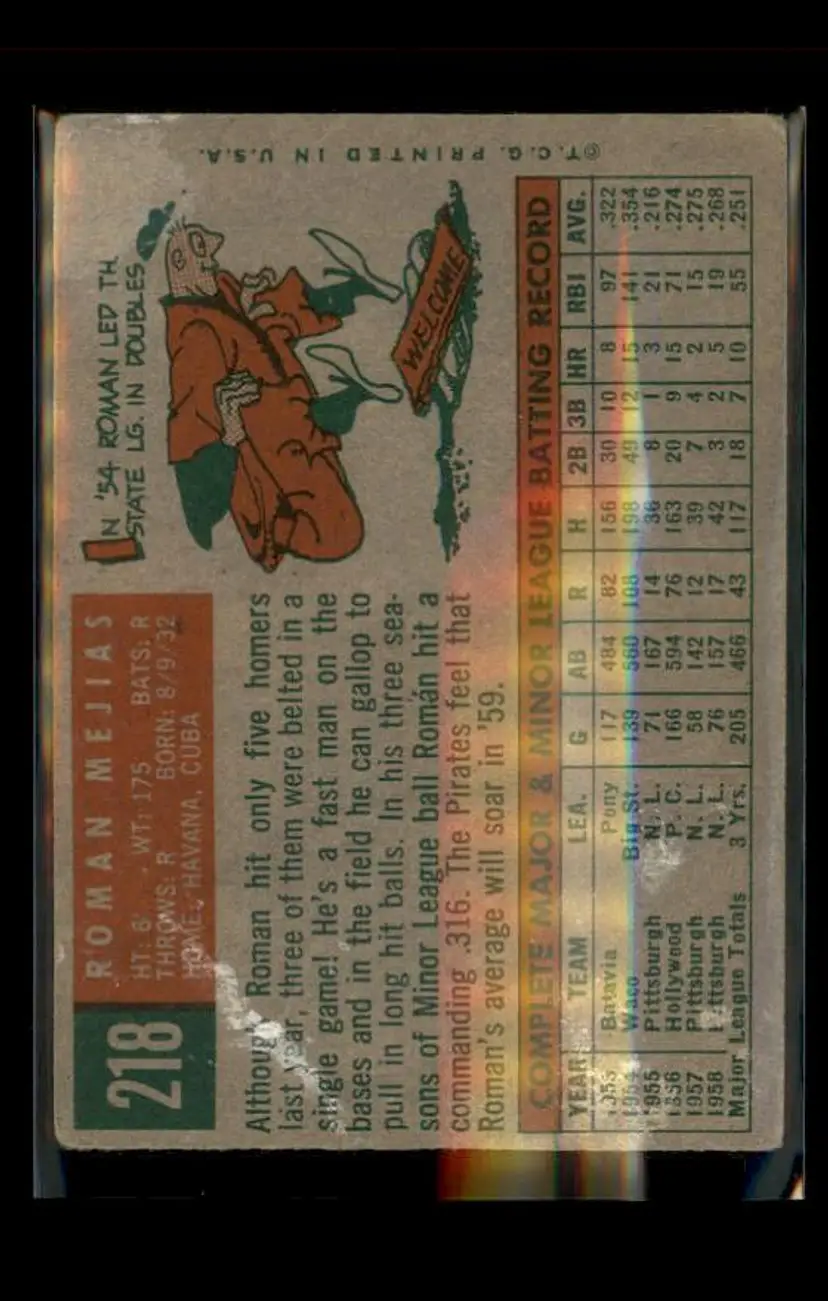 1959 Topps #218b Roman Mejias - (pk4) - Pittsburgh Pirates