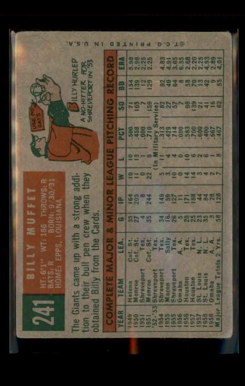 1959 Topps #241b Billy Muffett - (pk4) - San Francisco Giants