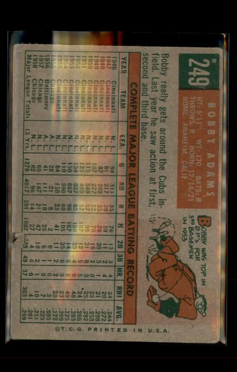 1959 Topps #249b Bobby Adams - (pk4) - Chicago Cubs