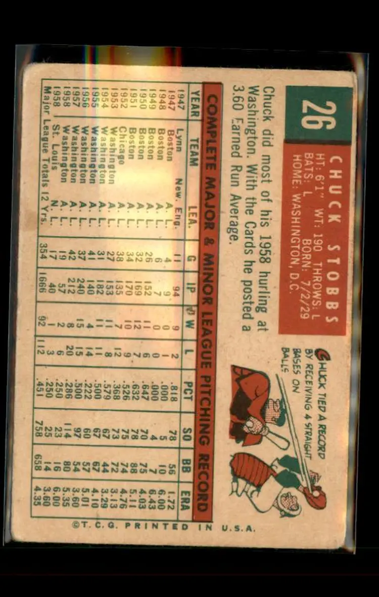1959 Topps #26 Chuck Stobbs - (pk4) - St. Louis Cardinals