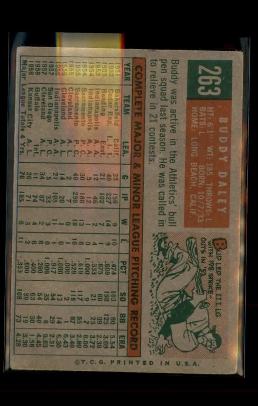 1959 Topps #263b Buddy Daley - (pk4) - Kansas City Athletics