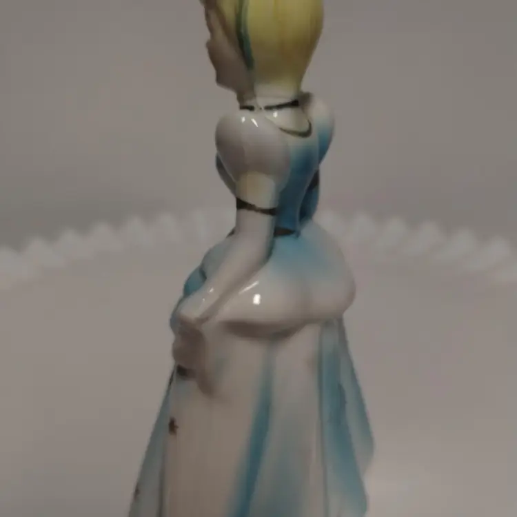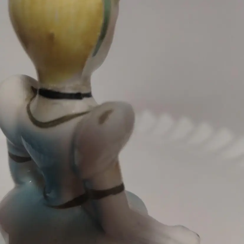 Twinkling in the moonlight Cinderella is ready to dance the night away with Prince Charming in this adorable figurine. In okay to fair vintage condition. Flea bite on tip of slipper. Neck repair hardly noticeable. Please see photos. 5" T