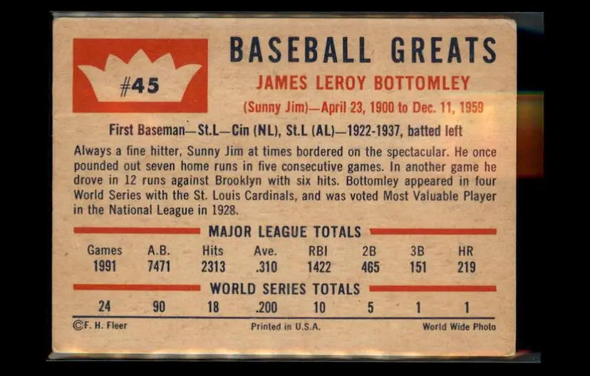 1960 Fleer Baseball Greats #45 Jim Bottomley - (pk2) -