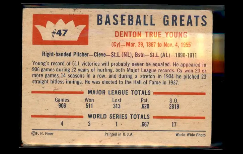 1960 Fleer Baseball Greats #47 Cy Young - (pk2) -