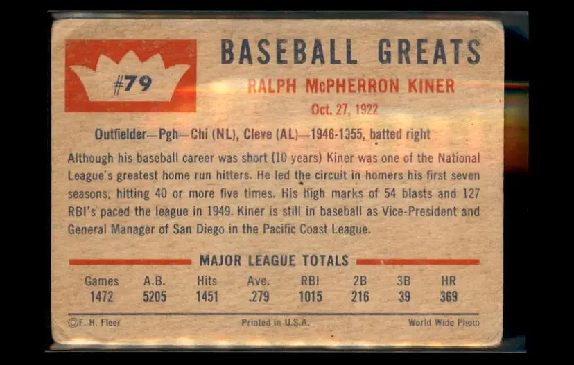 1960 Fleer Baseball Greats #79 Ralph Kiner - (pk2) -