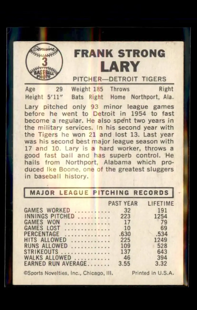 1960 Leaf #3 Frank Lary - (pk1) - Detroit Tigers