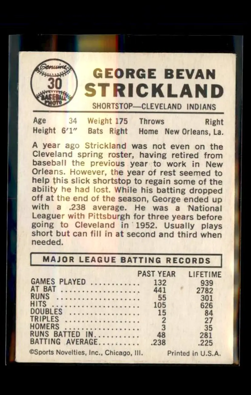 1960 Leaf #30 George Strickland - (pk1) - Cleveland Indians