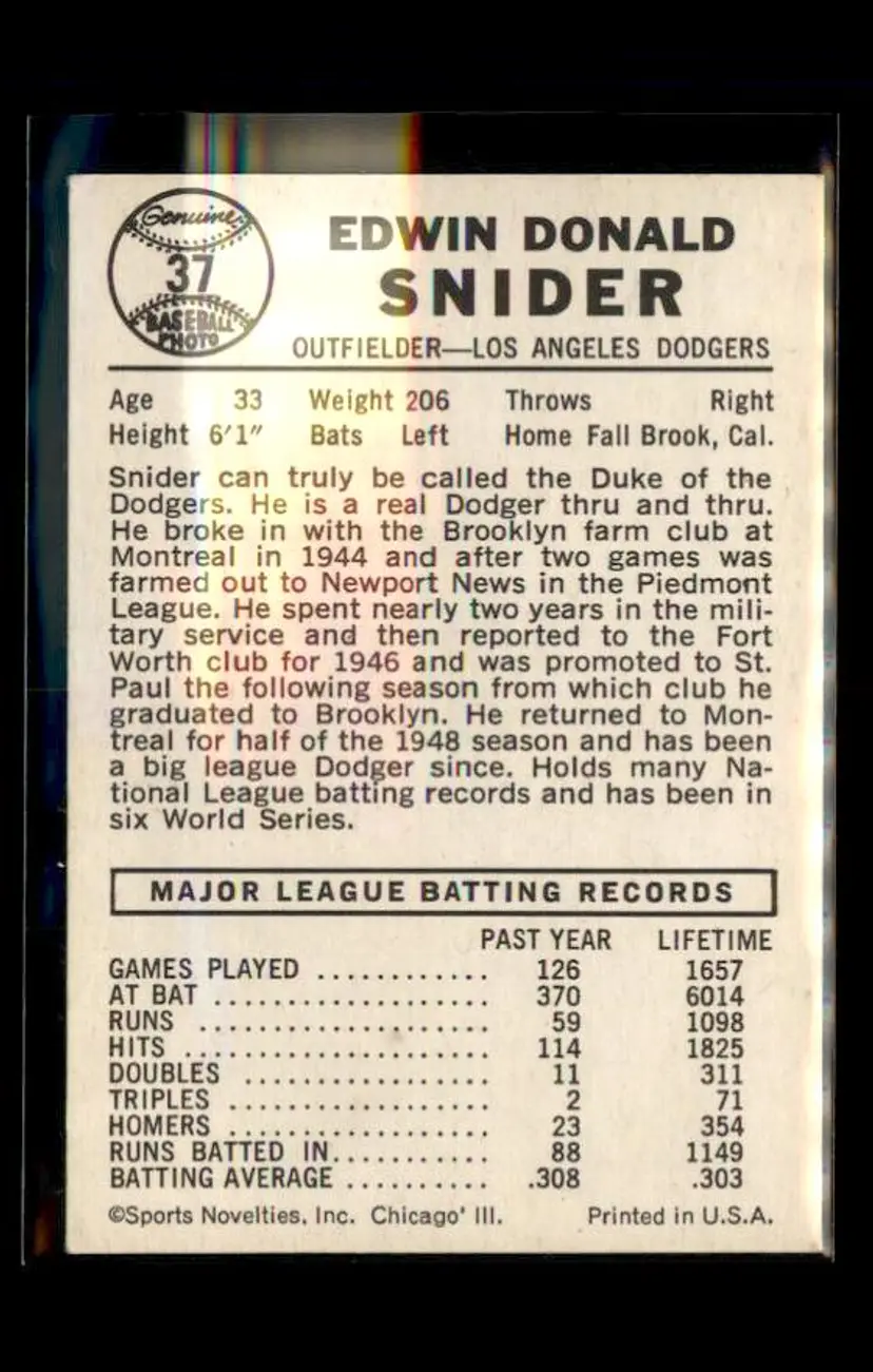 1960 Leaf #37 Duke Snider - (pk1) - Los Angeles Dodgers