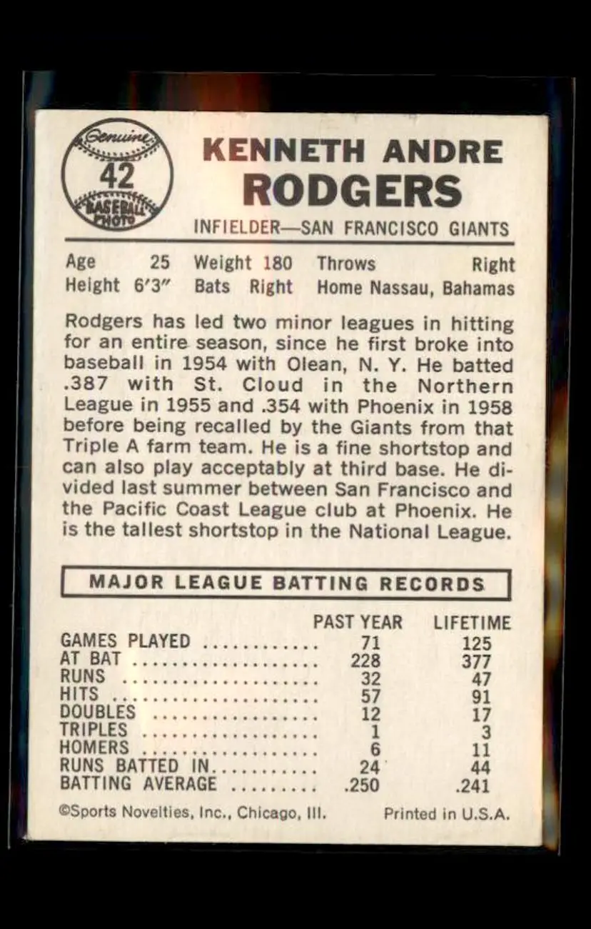 1960 Leaf #42 Andre Rodgers - (pk1) - San Francisco Giants
