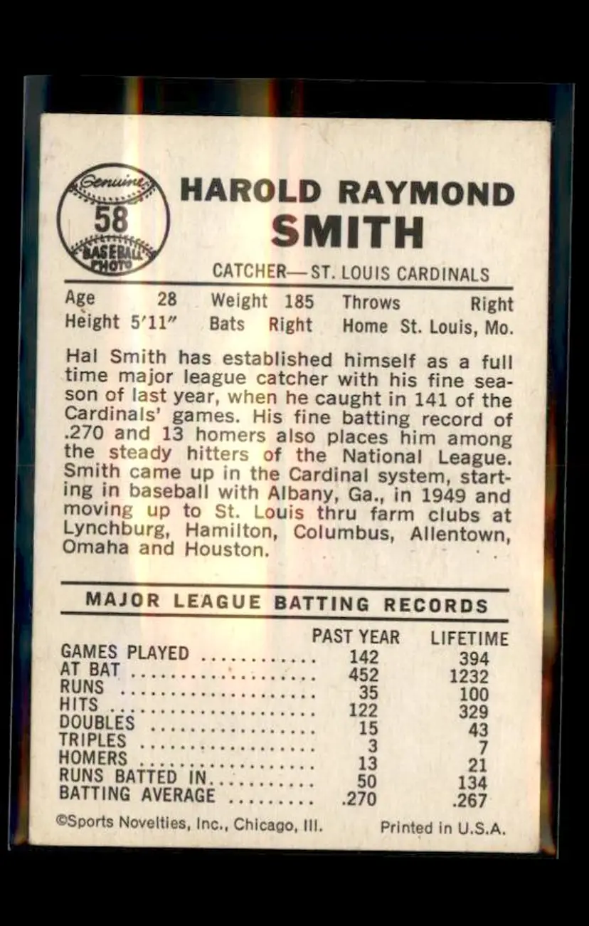1960 Leaf #58a Hal Smith Pre-Production - (pk1) - St. Louis Cardinals