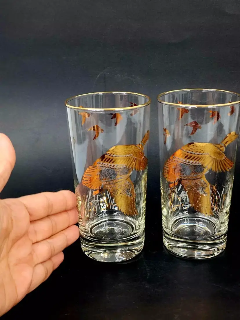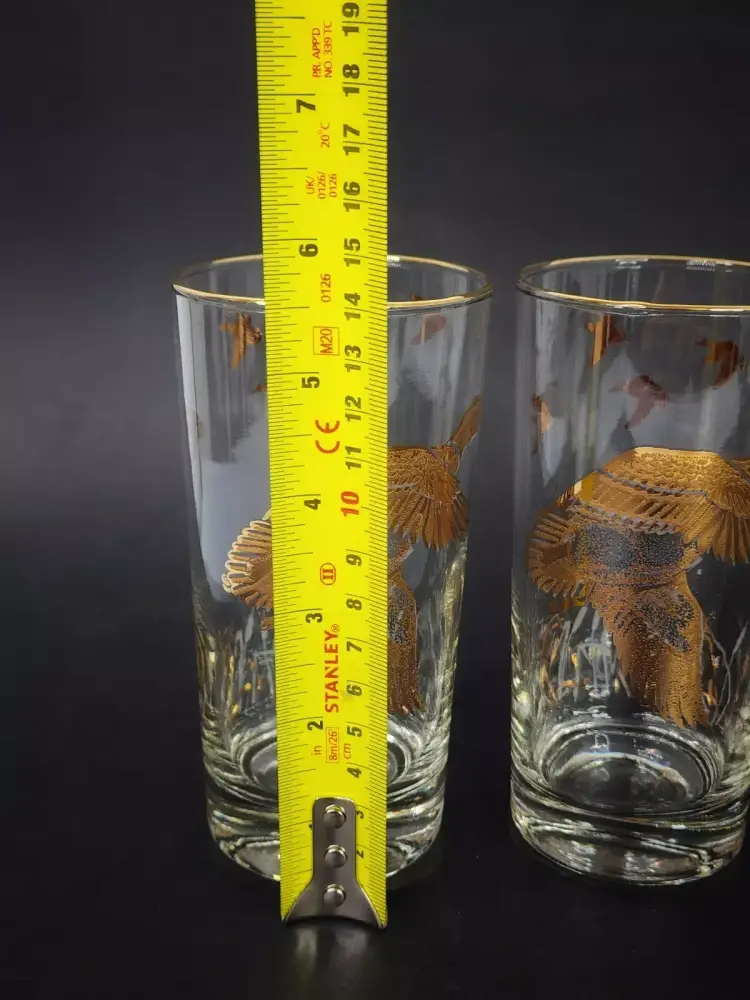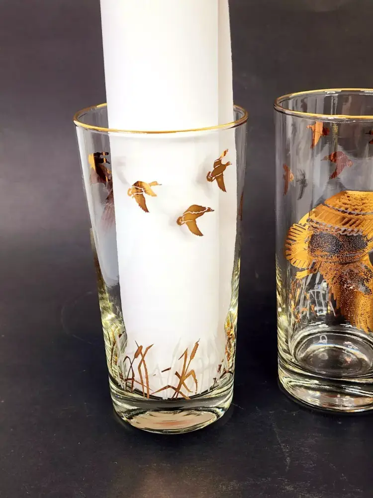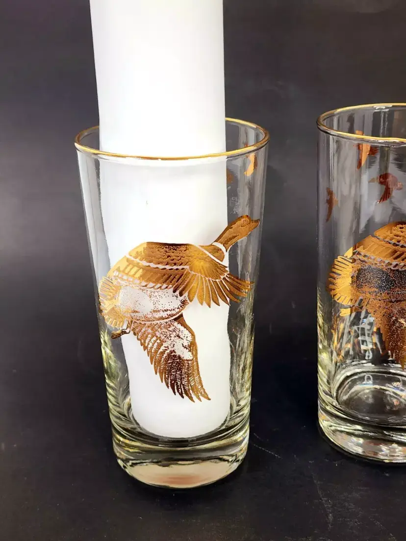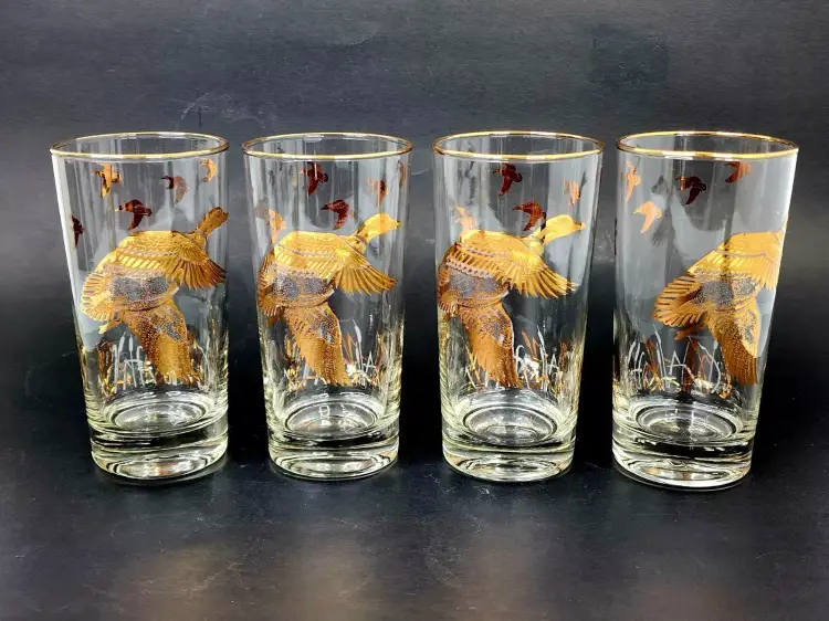 Set of 4 Golden Mallards by Libbey Glass Company, very good condition (faded gold part is by design). Measurements: 5 1/2" tall.
