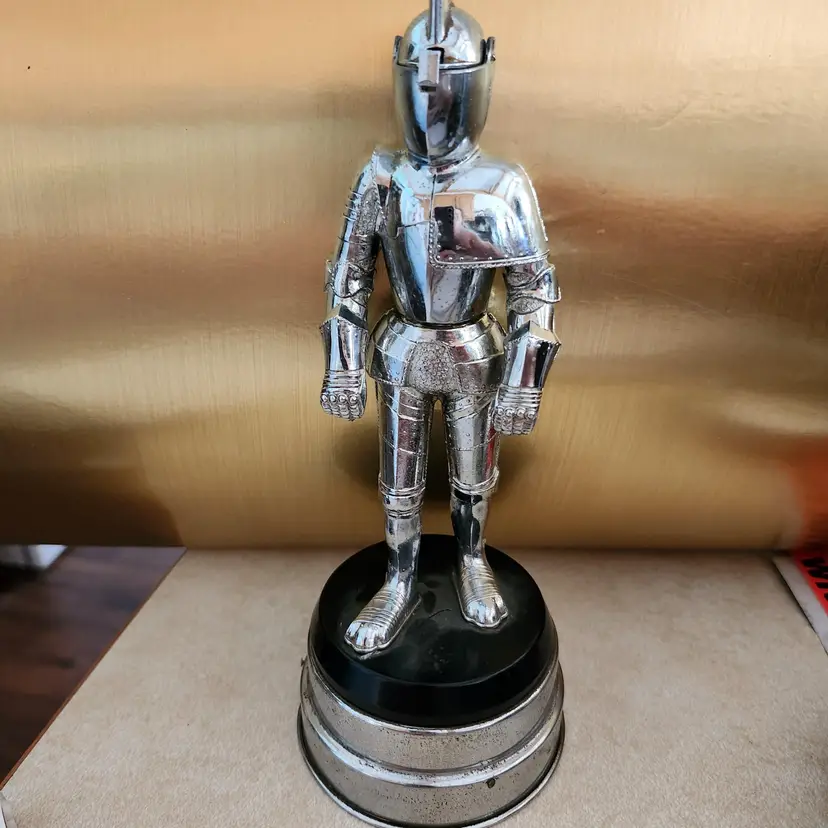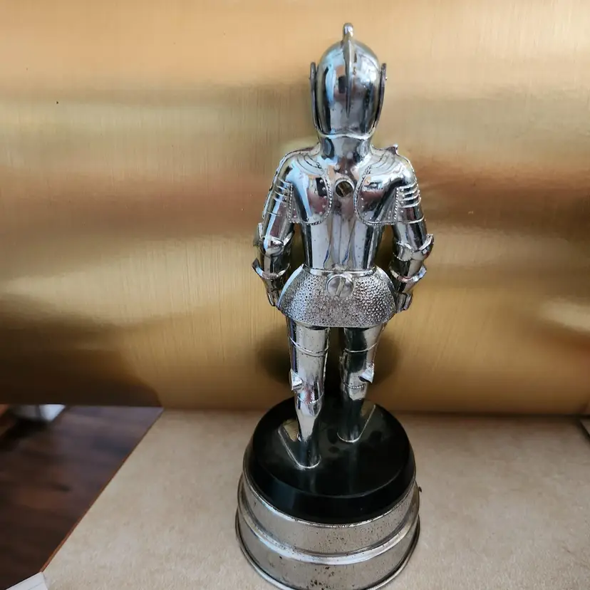 Suit of armor table lighter . Musical with swiss music box which plays "when irish eyes are smiling" . 7 inches tall