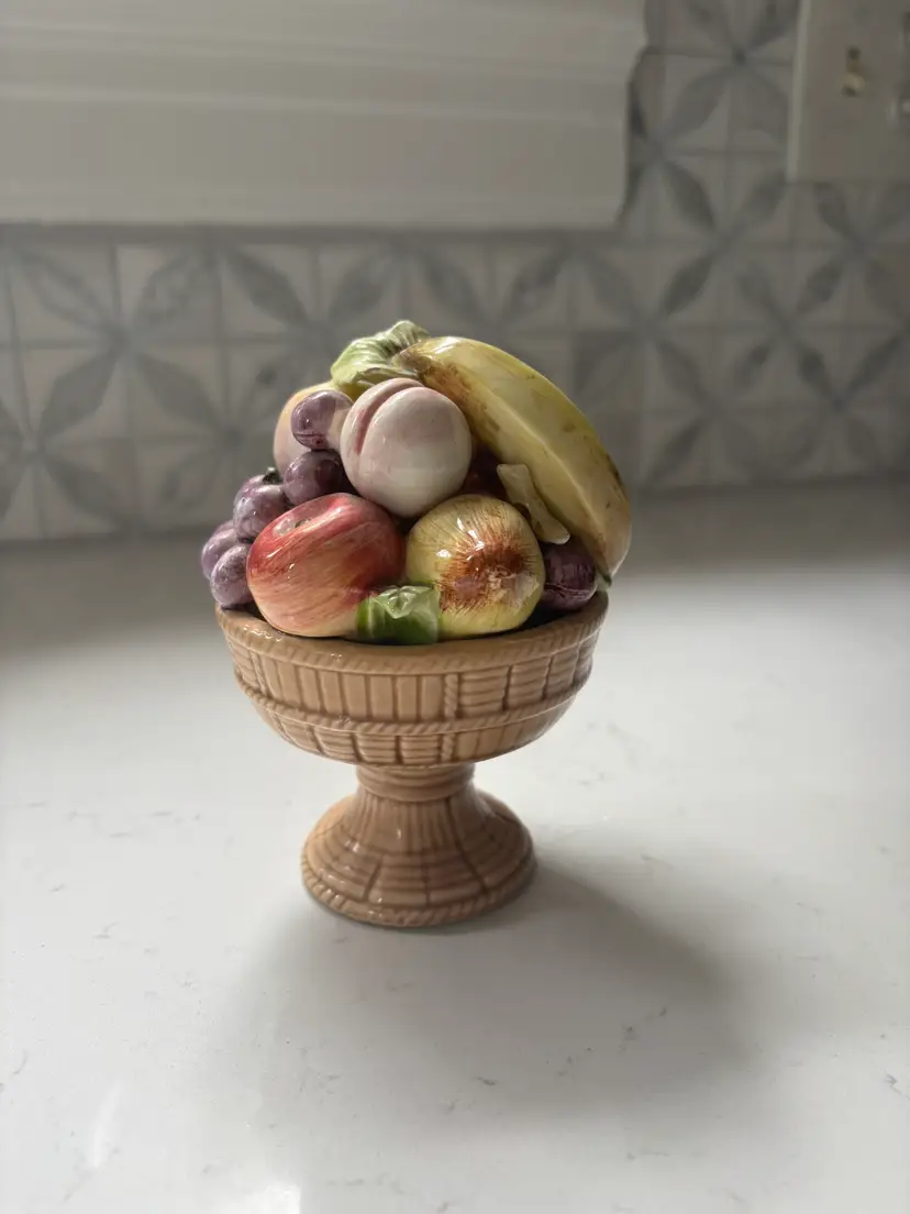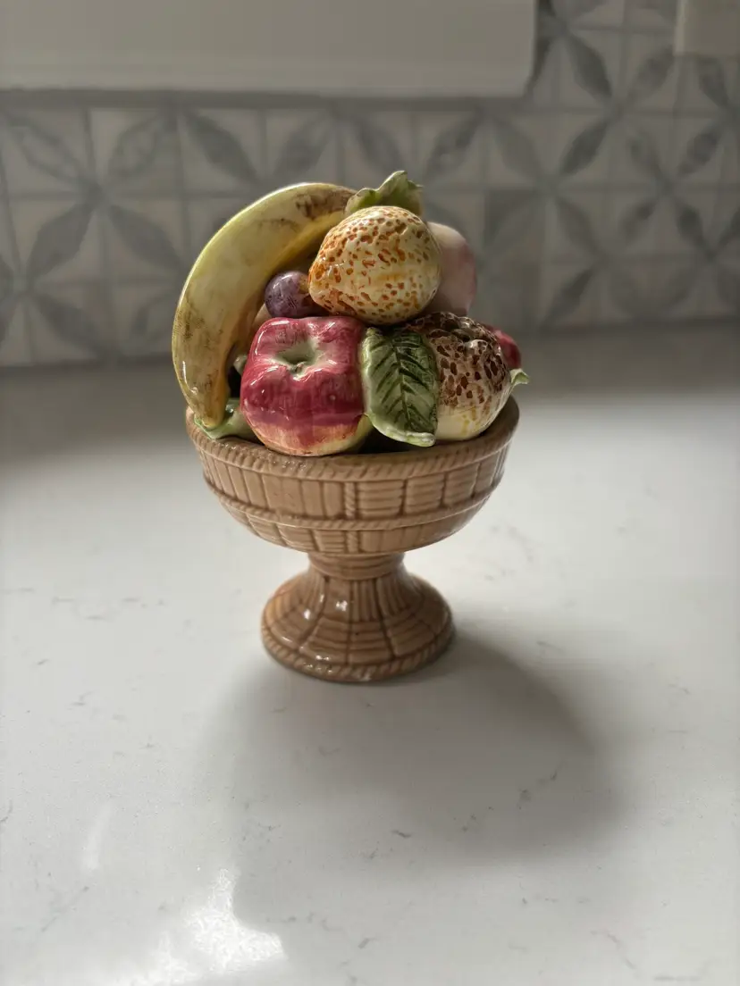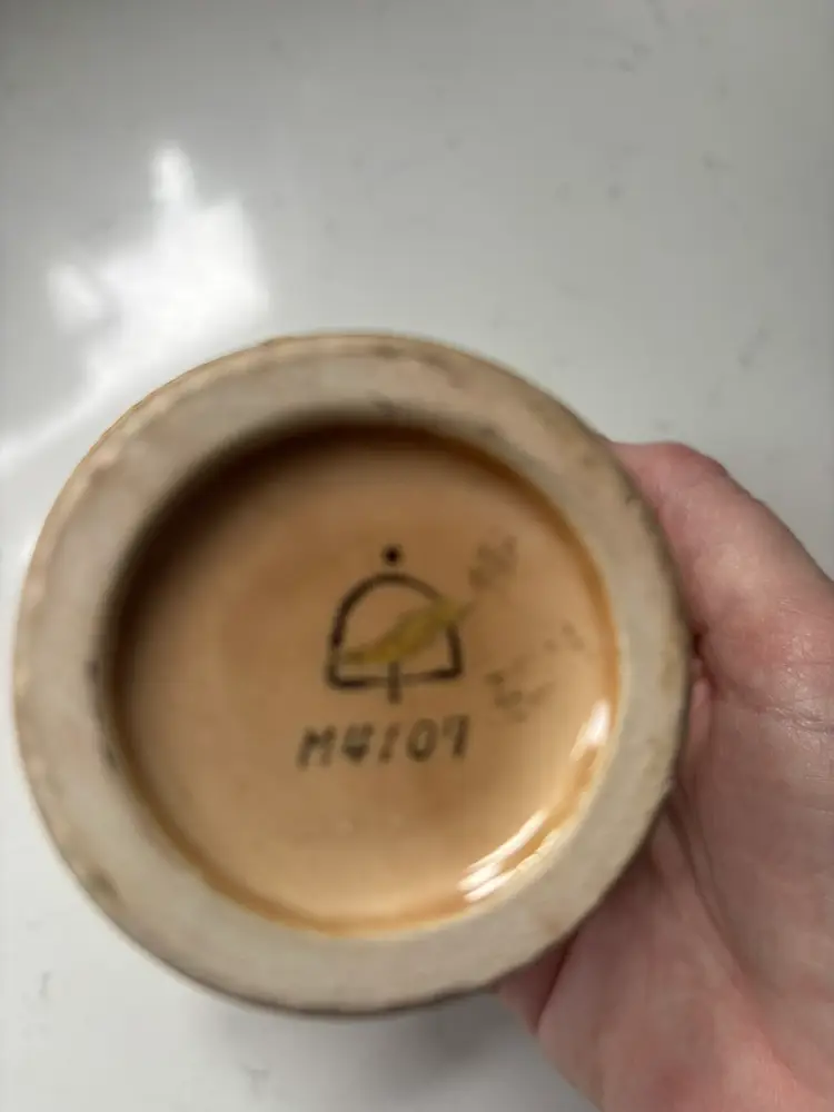 This cute little arrangement is aprox 5' tall x 3" wide. Wonderful detail in muted shades - and MCM classic!