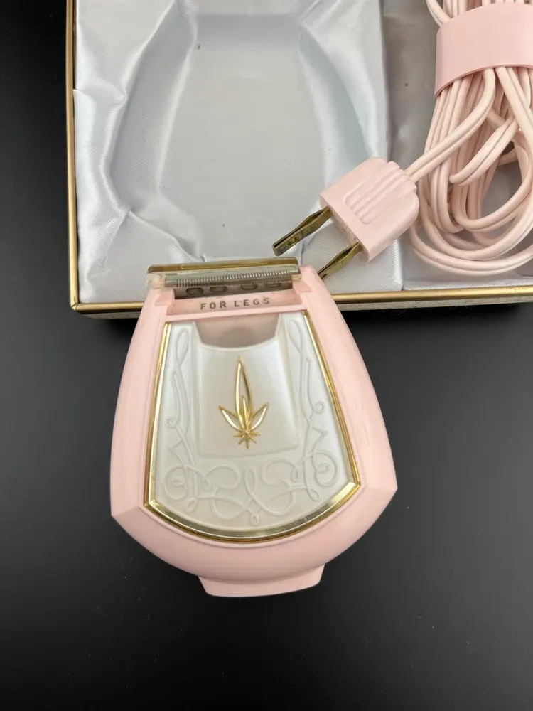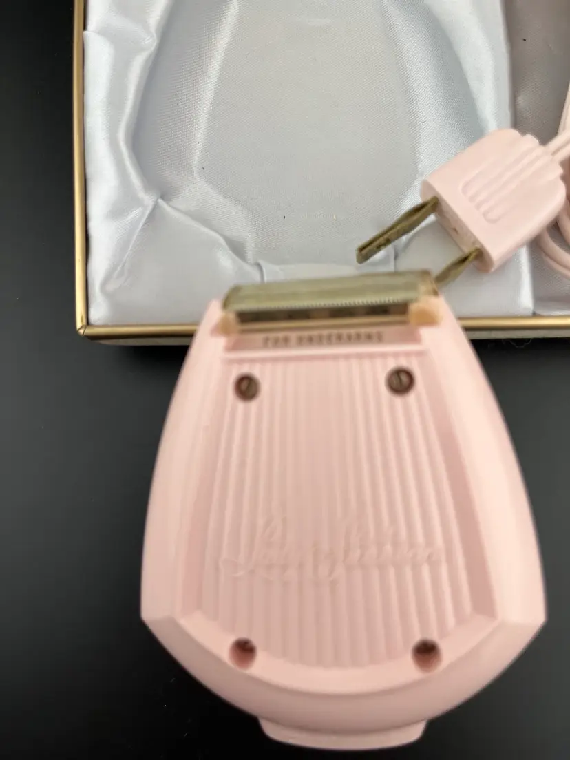 Complete w/ razor blade, plastic razor head cover, cord. Razor itself lights up when on. 1side labeled “For Legs”, the other “For Underarms”. Has case and is in vintage condition. WORKS actually ROARS!! Scared me when I 1st plugged it in😂🤣😂🤣I was live auction. 😂🤣😂🤣