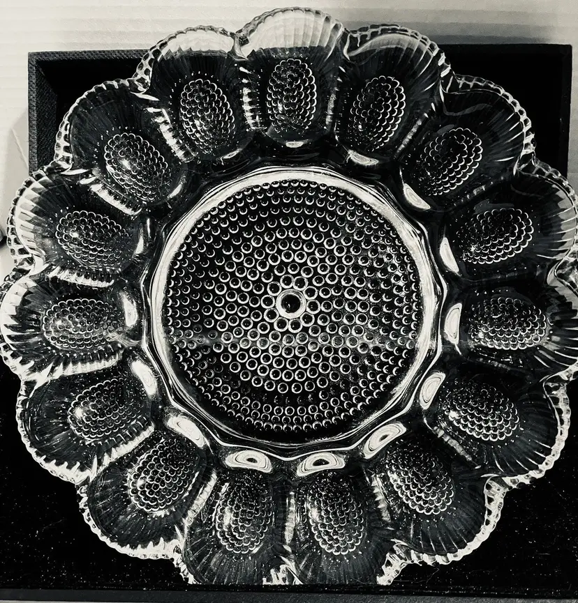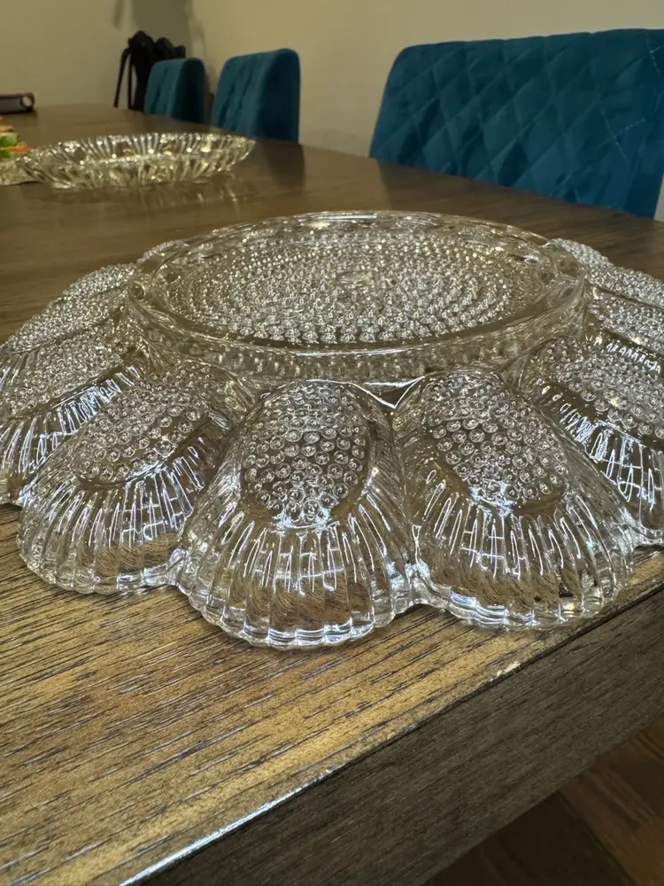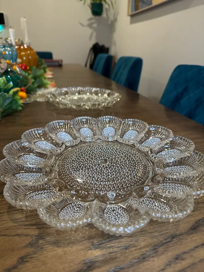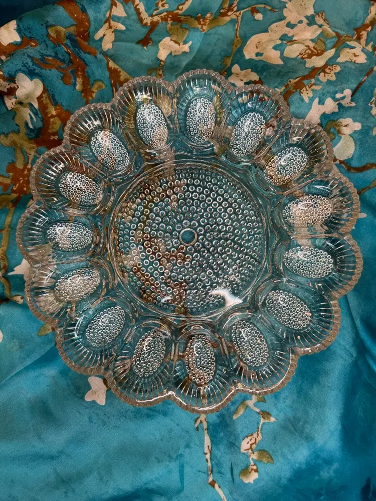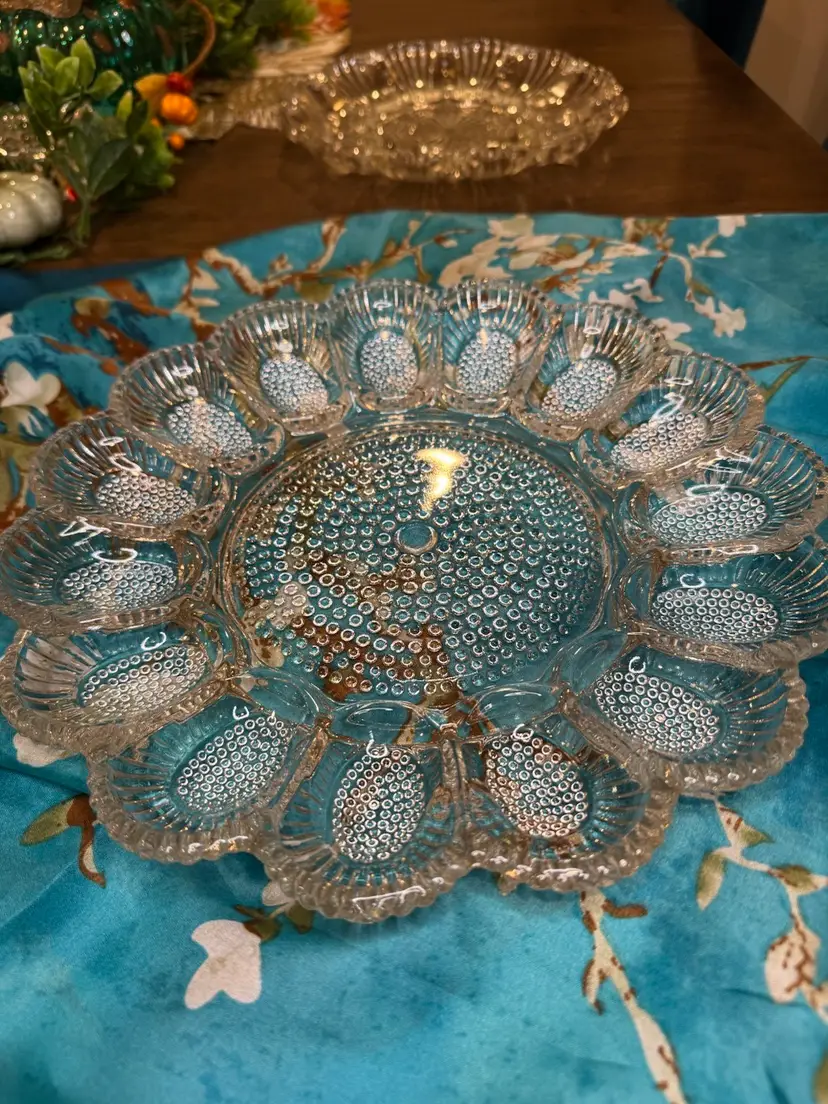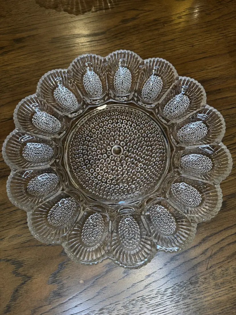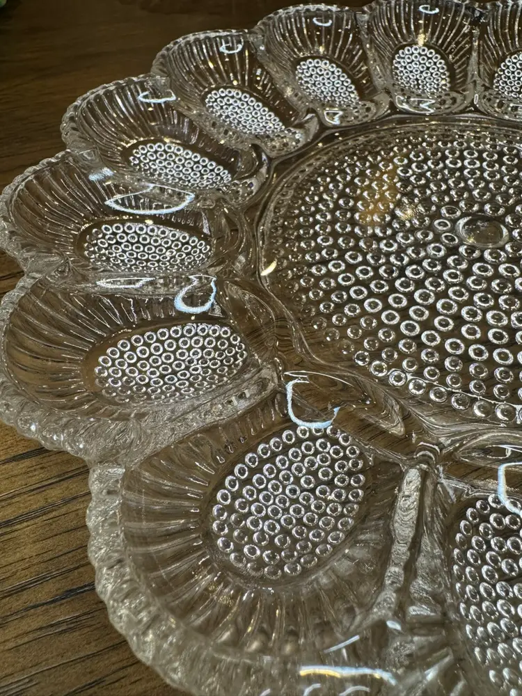1960s Indiana Glass Brilliant Hobknob Deviled Egg platter with places for 15 deviled eggs. 11" x 11" x 1.5" Stunning.
