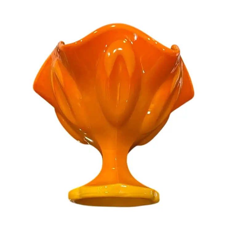 1960s LE Smith Vintage 6 Petal Bittersweet Slag Glass Compote