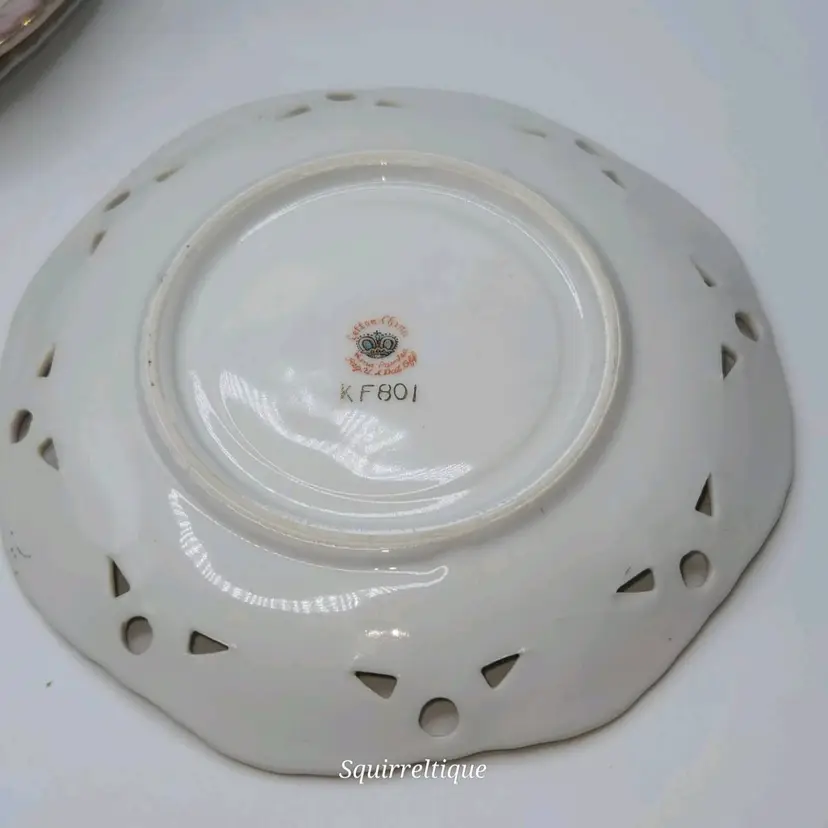 1960-1983 Lefton China Japan Porcelain Fired-on and Paper Backmarks Exclusives Demitasse Footed Cup and Reticulated Laced Saucer Pattern #KF801. Just displayed. Believe if used it was minimal gentle use.