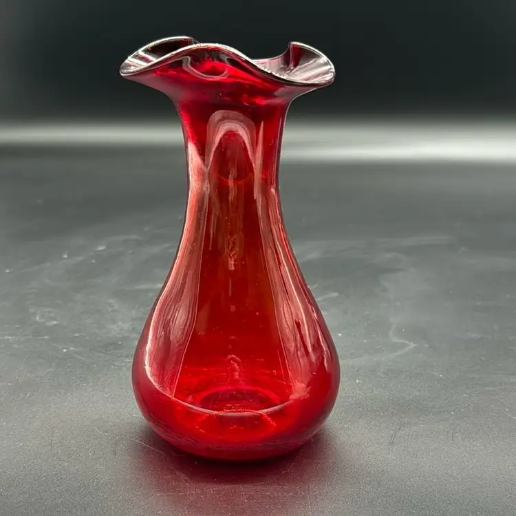1960s Ruby Red Art Glass Vase no chips or cracks