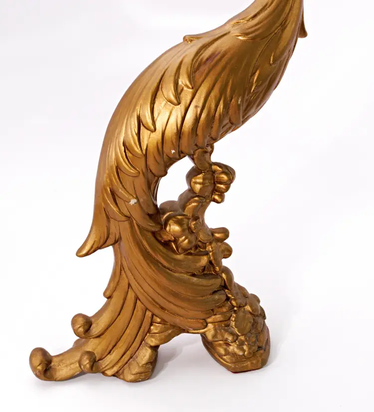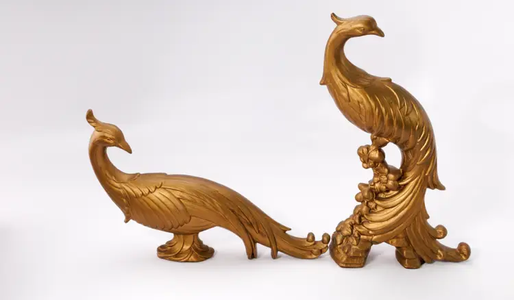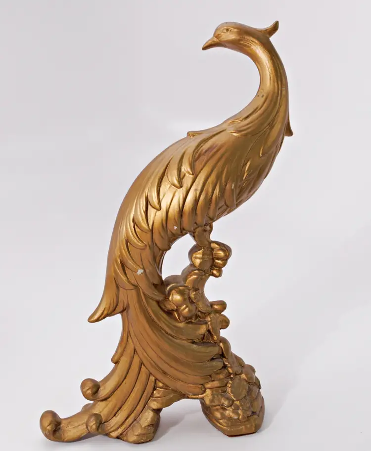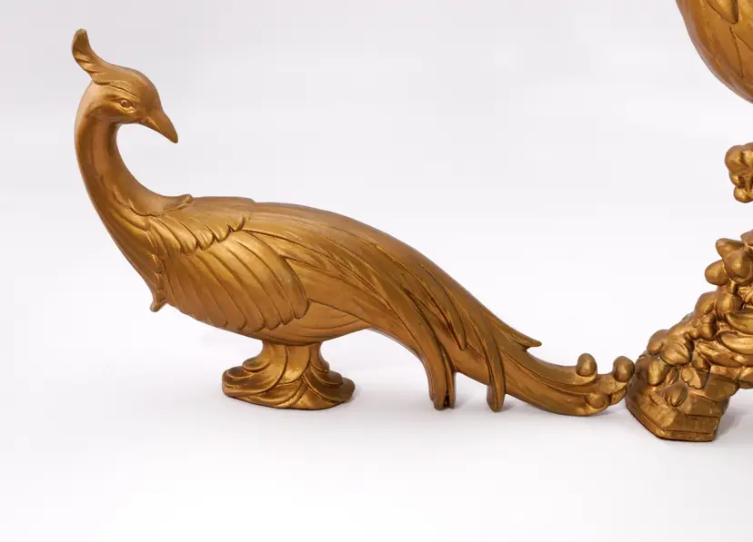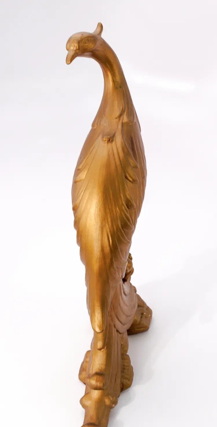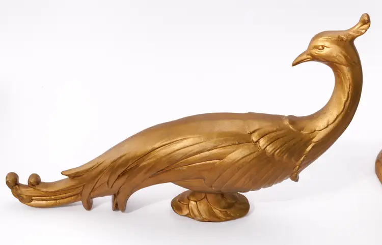 Vintage 1960s Syroco golden peacock small statues/figurines.
