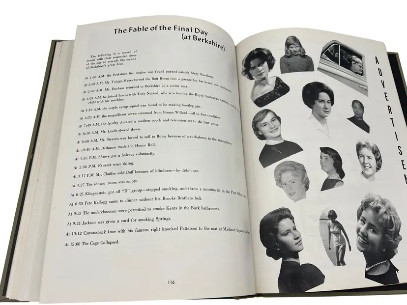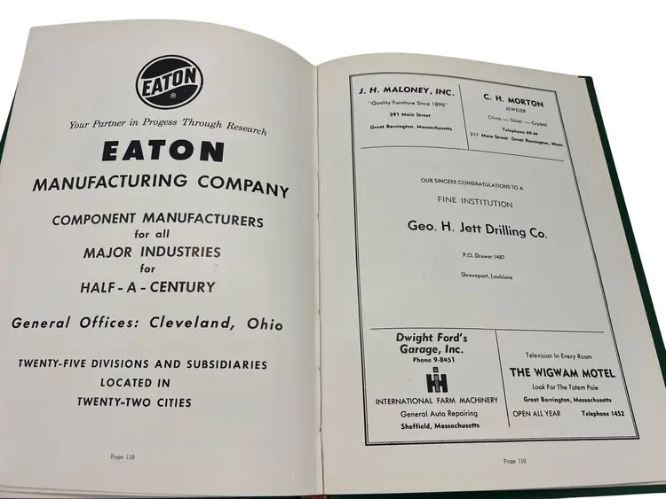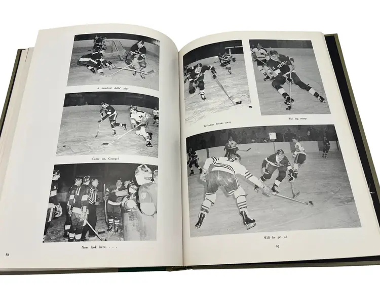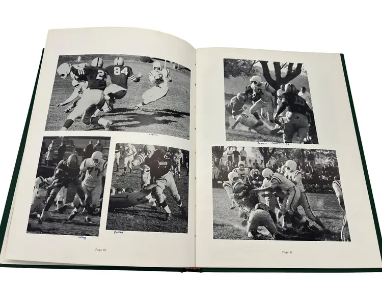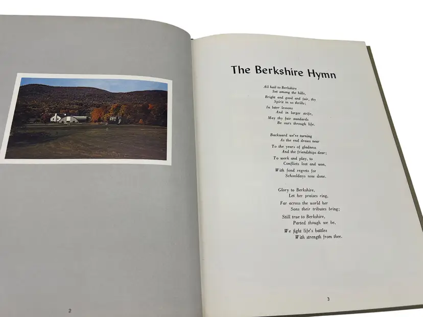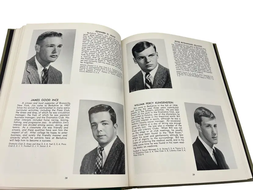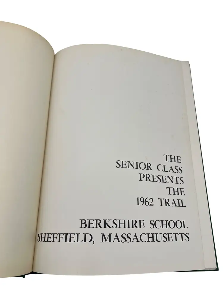 Pair of original Berkshire School “The Trail” yearbooks from 1961 and 1962 in Sheffield, Massachusetts. Each hardcover volume measures about 10.75" x 8". The books include senior portraits with biographies, faculty and staff, campus scenes, and lots of sports coverage—football, hockey, basketball, and more. There are humorous features, class write-ups, and period advertising from New England businesses. Great snapshot of early-1960s life at a classic New England prep boarding school and a nice resource for alumni, genealogists, or school historians.