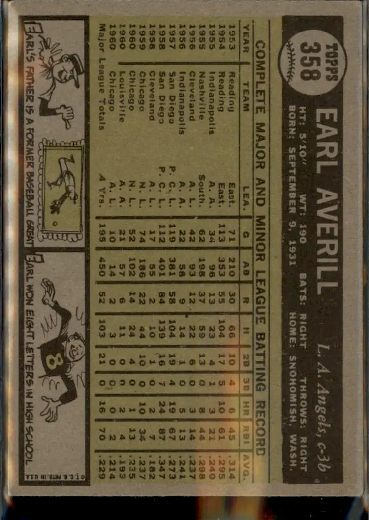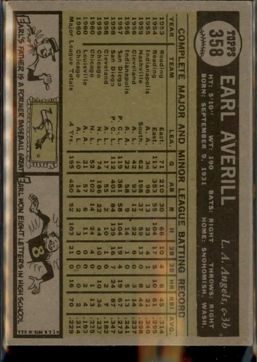 1961 Topps #358 Earl Averill - ( ) - Los Angeles Angels