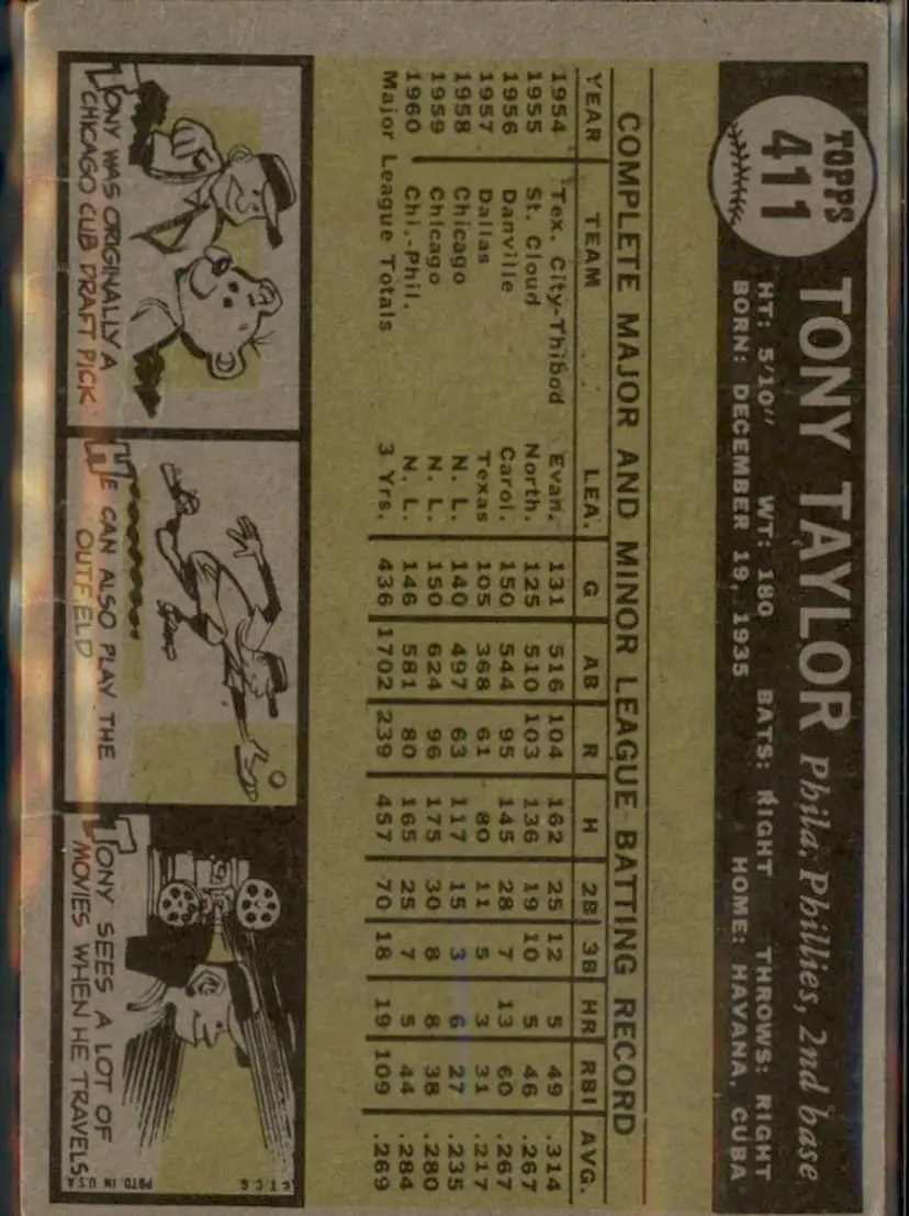 1961 Topps #411 Tony Taylor - ( ) - Philadelphia Phillies