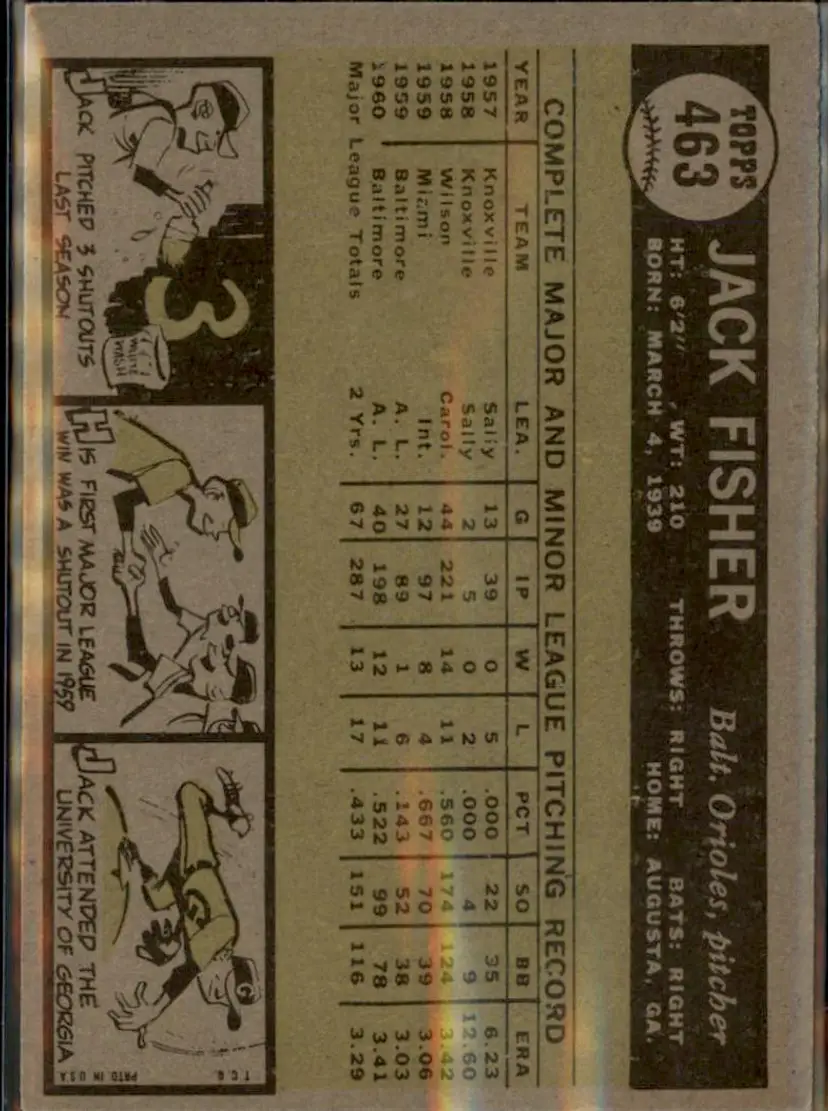 1961 Topps #463 Jack Fisher - ( ) - Baltimore Orioles