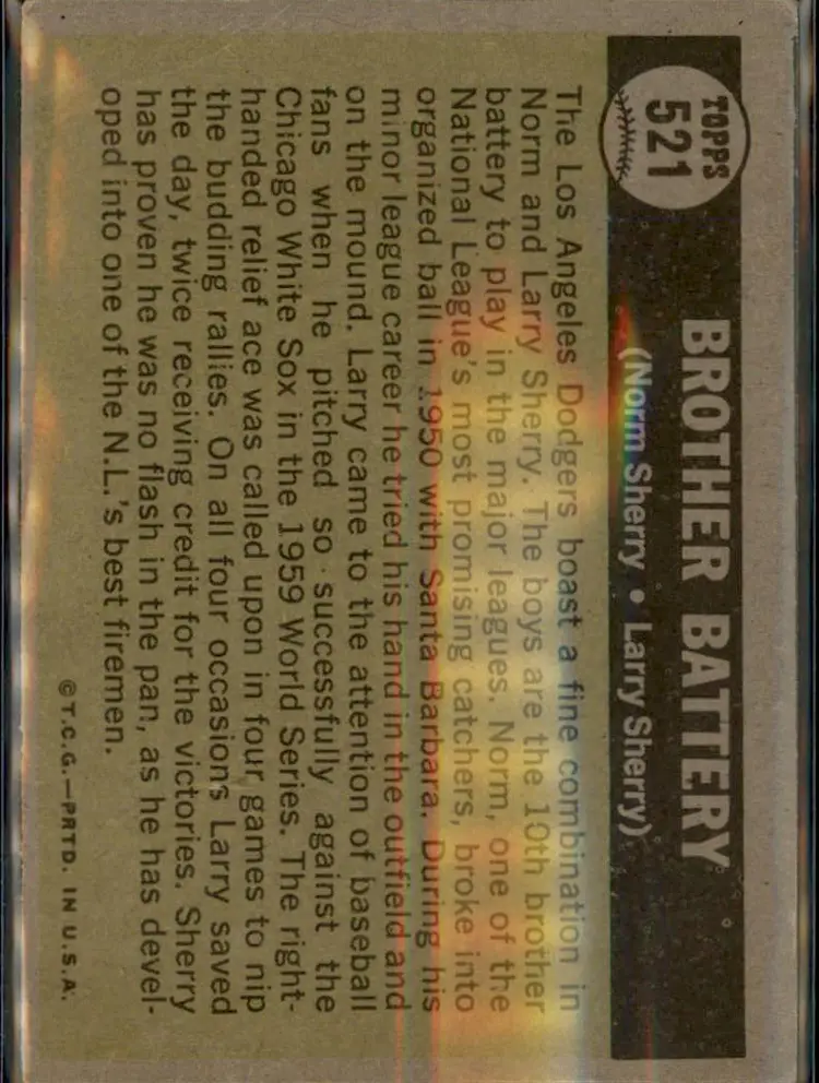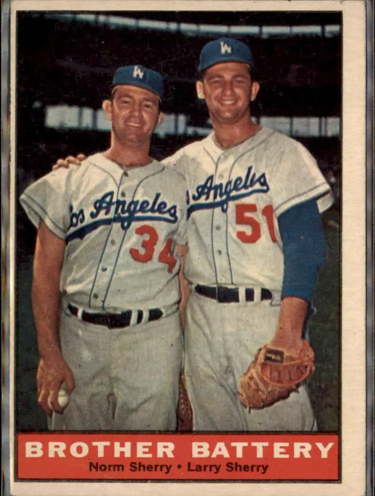 1961 Topps #521 Brother Battery (Norm Sherry / Larry Sherry) CPC - ( ) - Los Angeles Dodgers