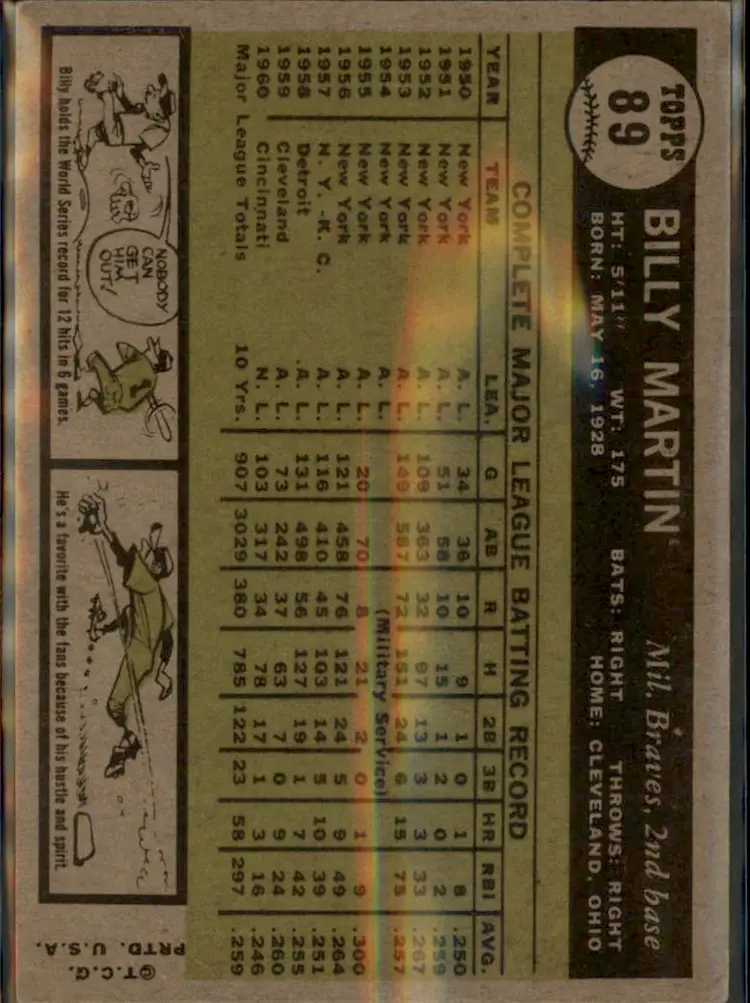 1961 Topps #89 Billy Martin - ( ) - Milwaukee Braves