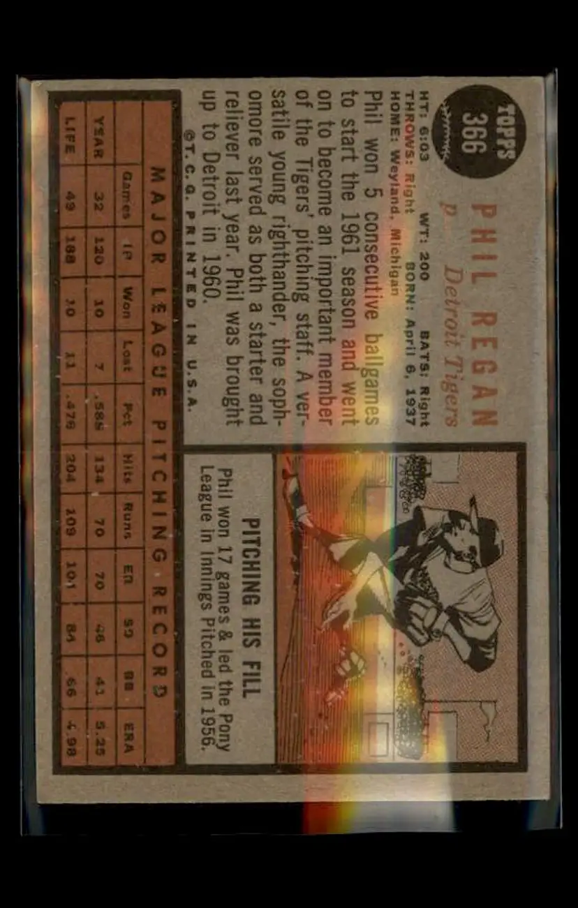 1962 Topps #366 Phil Regan - (pk1) - Detroit Tigers