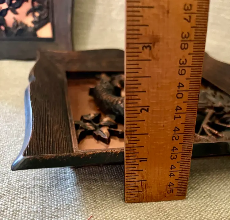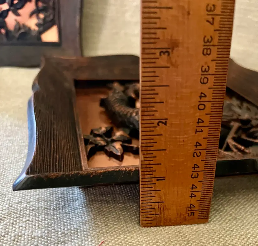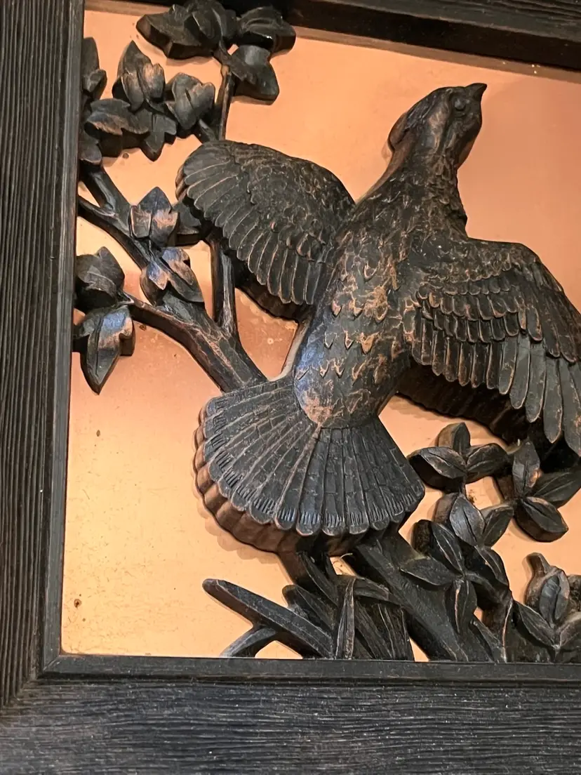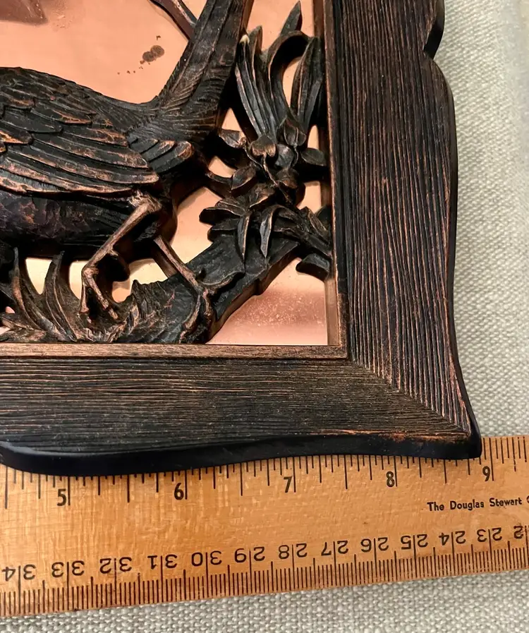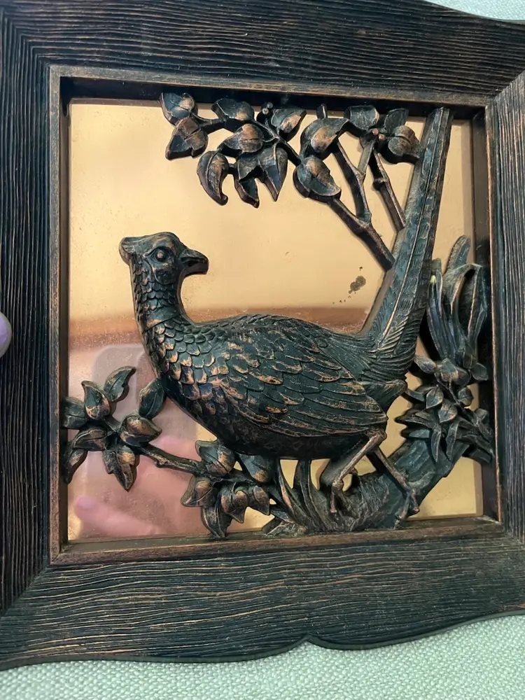 These are vintage MCM 1963 3D framed bird wall art hangings (approximately 9” x 8.75” x 1.5”) created by the Coppercraft Guild in Dart, Indiana, United States. Made of copper and faux wooden frame, these pieces depicts bird game pheasant and quail design, great for lodges, cabins, cottages, sun rooms or enclosed porches, lakeside or riverside rental spaces or Event Centers. With its artisanistry and origin, this wall art pieces are nostalgia from the mid-20th century. These did come from a lakeside A-Frame cottage Estate nearby.