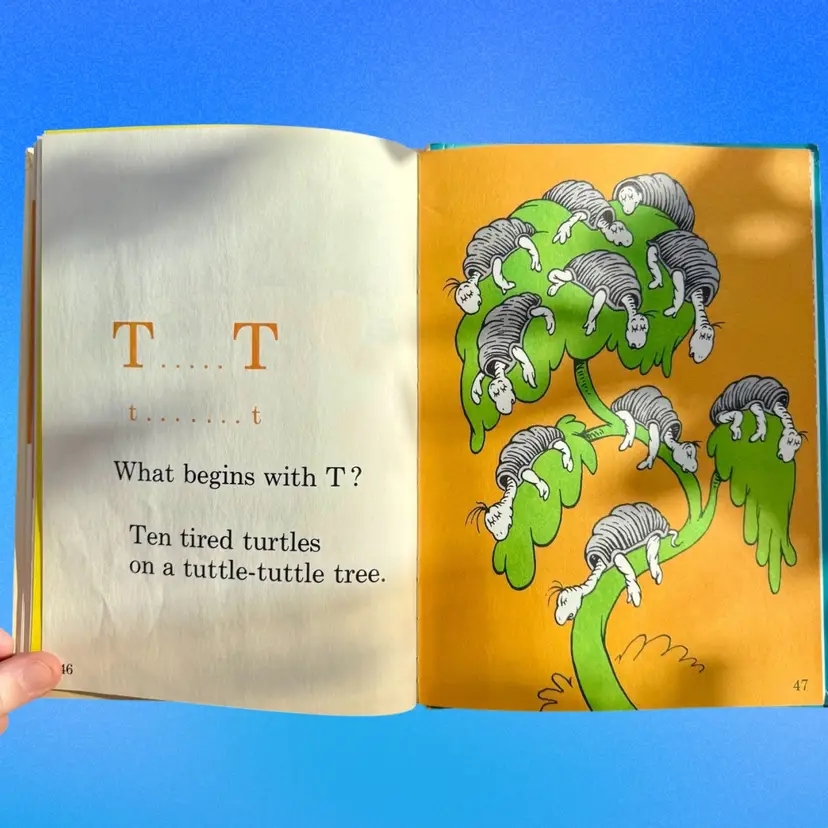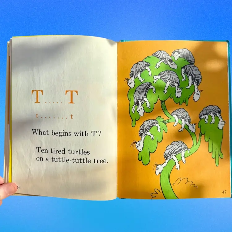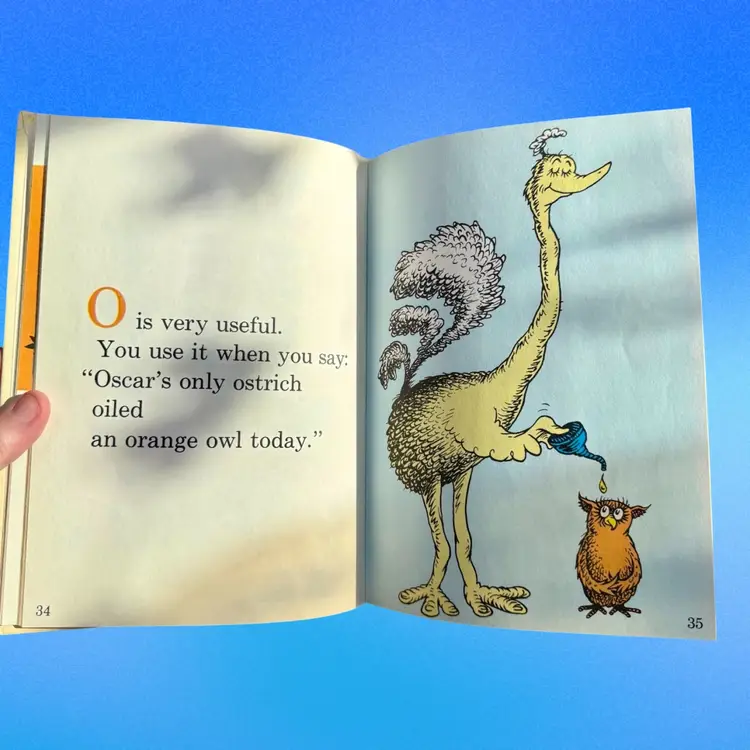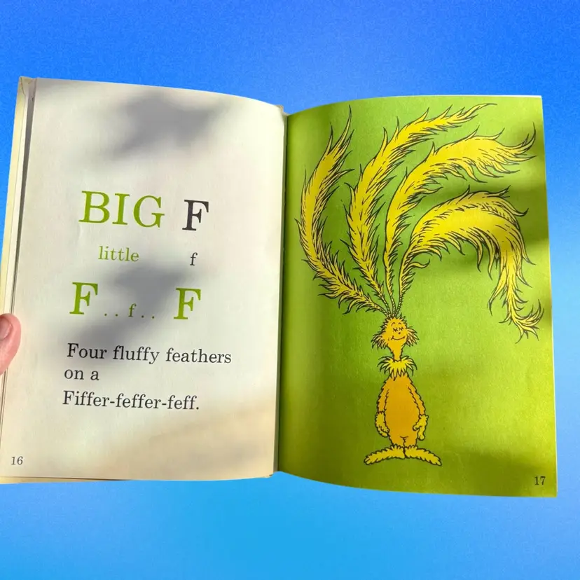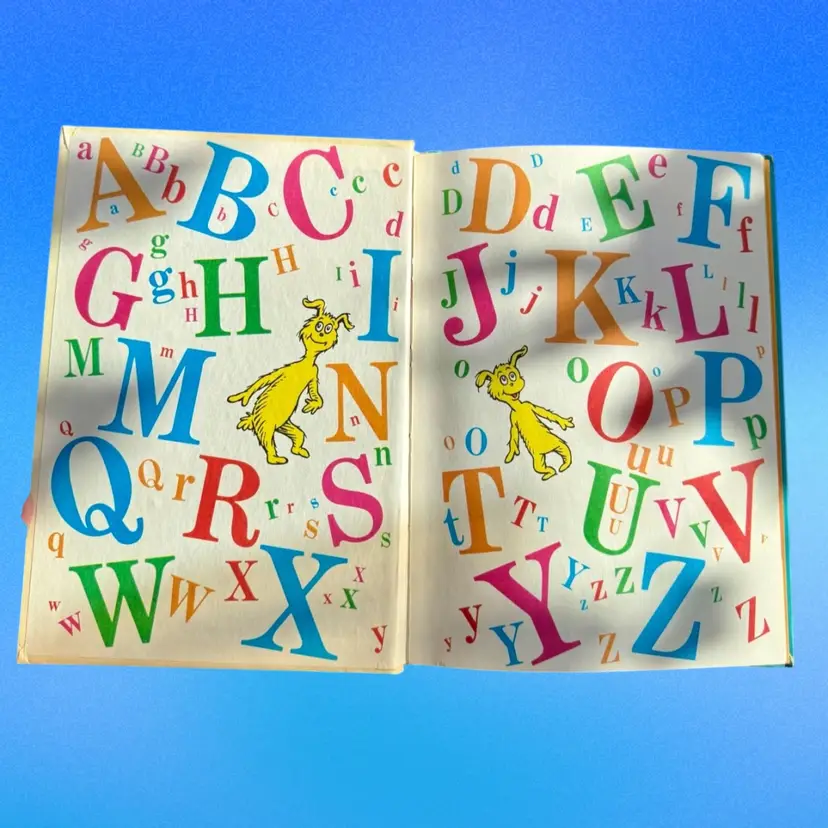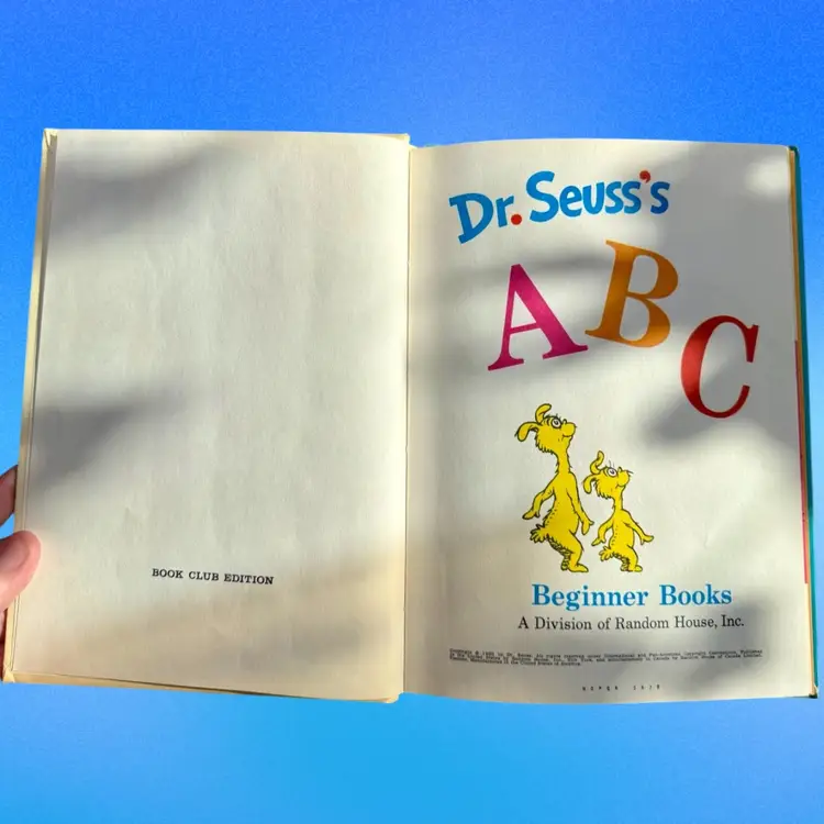 6.75"x9.25". 1963 Dr. Seuss BOOK CLUB EDITION of “ABC”. In good vintage/used condition overall. Cover has a scribbled area in green crayon, and some minor wear/scuffing consistent with age. Some pages may have some minor wrinkling. Please check photos thoroughly.