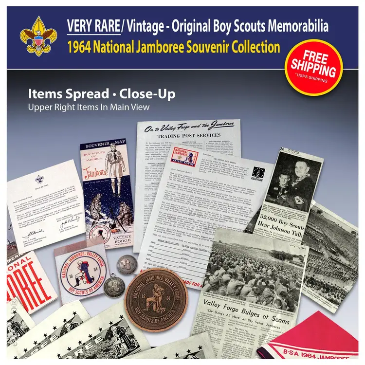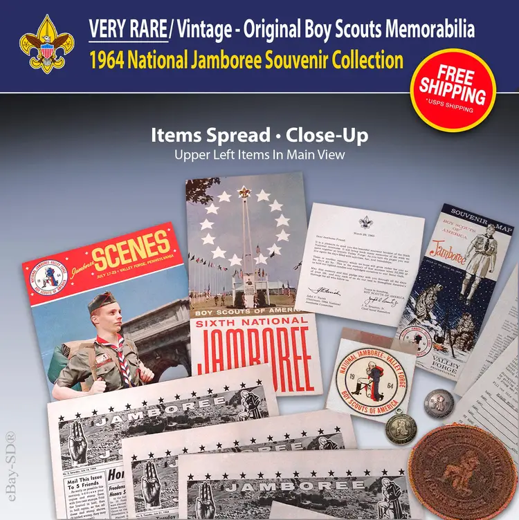 • The Boy Scouts of America holds a National Scout Jamboree approximately every four years. They have been doing this since 1935. The various memorabilia from these National Jamborees is very collectible and sought after …. especially the 1964 National Jamboree held in Valley Forge, Pennsylvania.