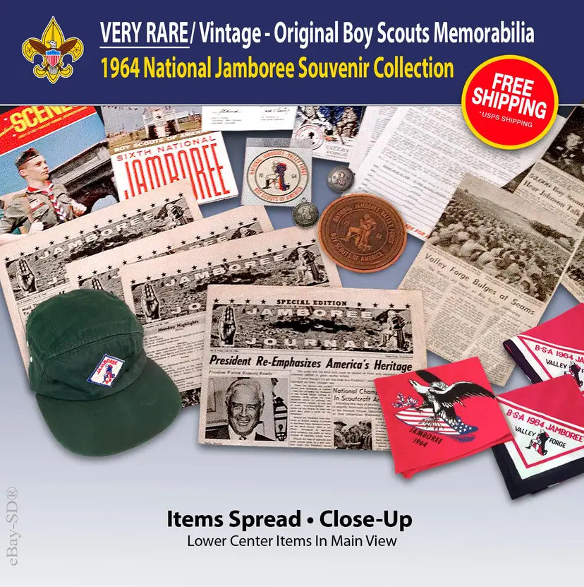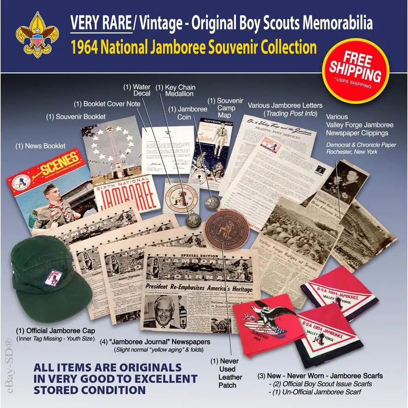 • The various rare items being offered here, were distributed or purchased directly at and during the actual 1964 Jamboree. Many of the items may never have been available here on eBay, or are very rare and very hard to find.