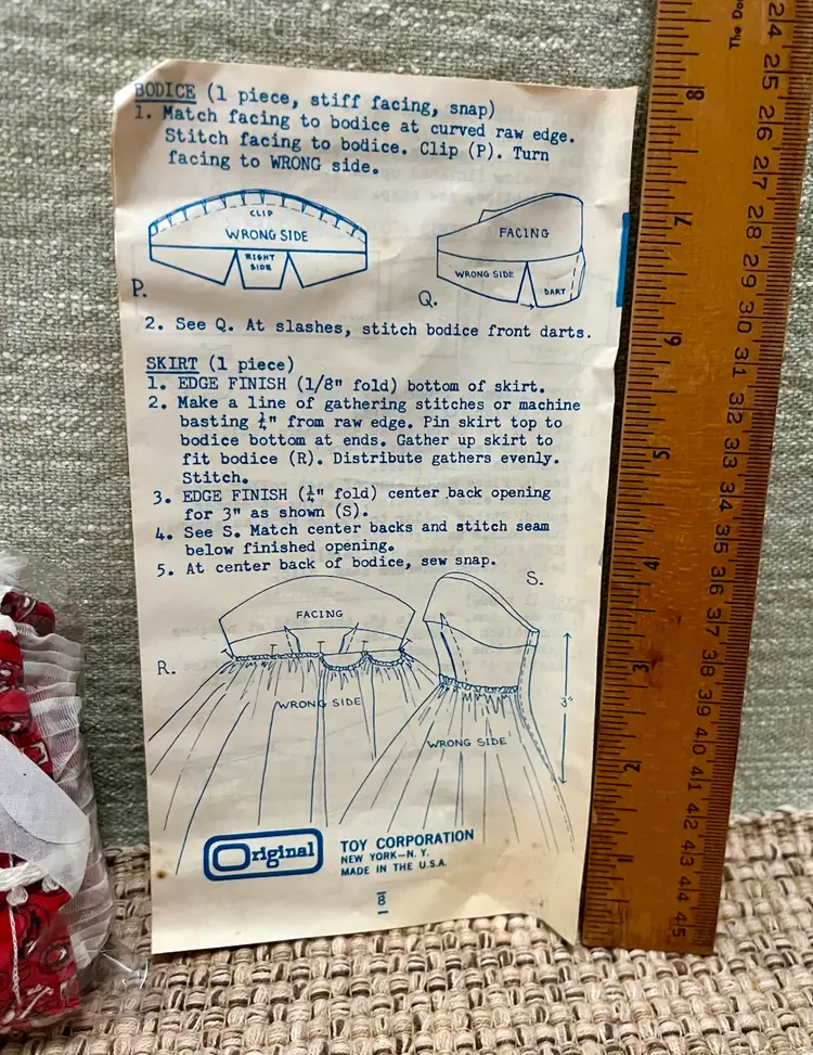 Please look at all the photos prior to deciding to make a purchase. This is a gently used / pre-owned item. And, VINTAGE (20 years +) is seldom perfect - yellowed primer and instructions by Original Toy Corporation and its original fabric scraps may still have use for its new owner. Buyer is strongly encouraged to review the photos and decide for themselves its condition as my interpretation may not align with yours. Prior to a purchase, questions not answered in photos, details, description are welcome.