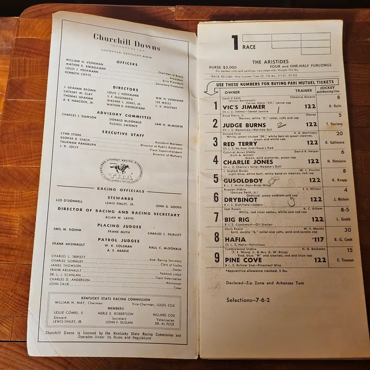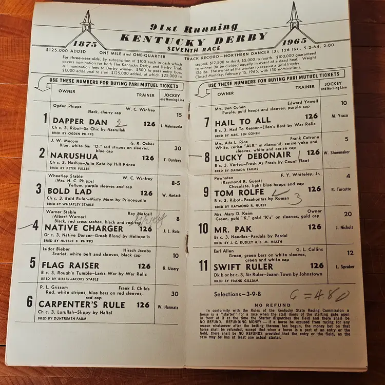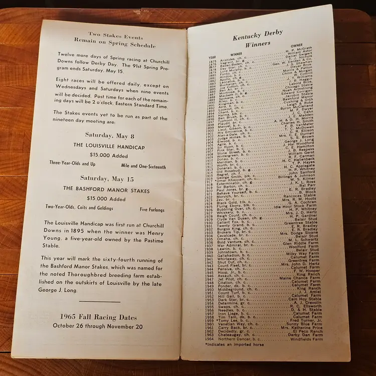 Original 1965 Kentucky Derby Official Program from Churchill Downs (91st running, May 1, 1965).