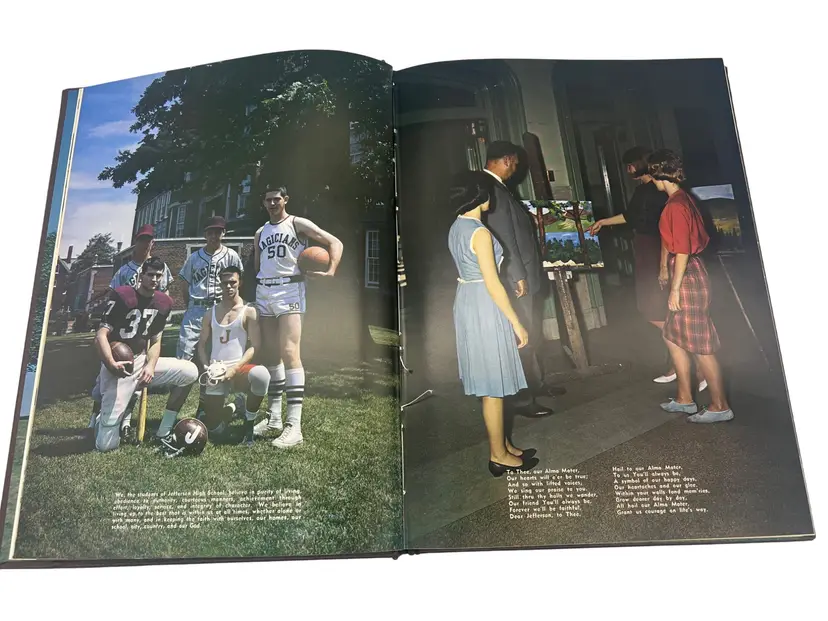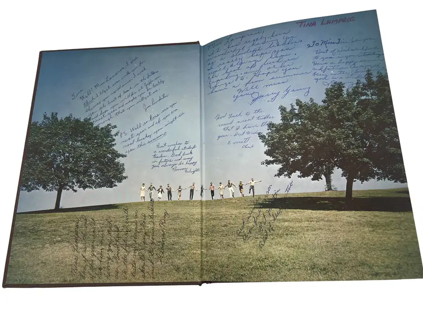 Some minor wear to cover. The cover does have some tackiness to it where it appears a book cover was once on it. No rips or tears to pages noted. Signatures throughout the yearbook. See pictures for further details on condition.