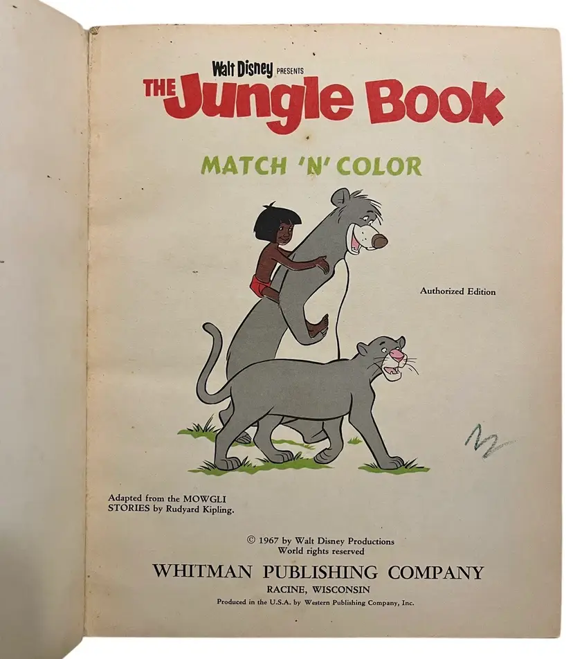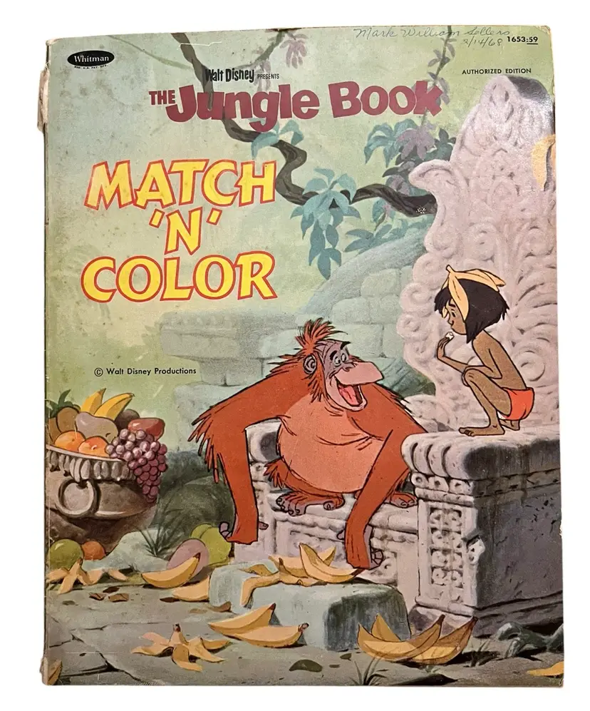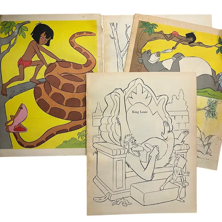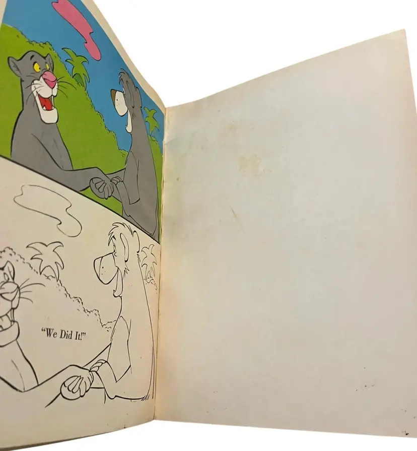 Wonderful, colorful vintage coloring/activity book. It is well-loved, with colored pages, unattached sections, and some foxing (oxidation spots from age), but it is complete and has lots of clean pages that would be super for crafting, displaying, or just enjoying as a little piece of Disney history. The book measures 8” x 10”. I’m always happy to combine shipping for multiple items.
