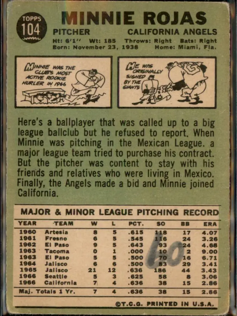 1967 Topps #104 Minnie Rojas - (pk3) - California Angels
