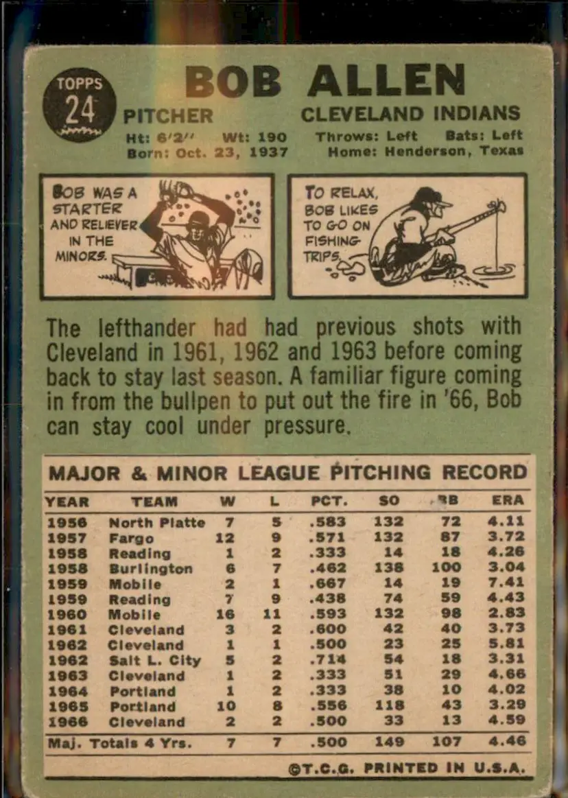 1967 Topps #24 Bob Allen - (pk3) - Cleveland Indians