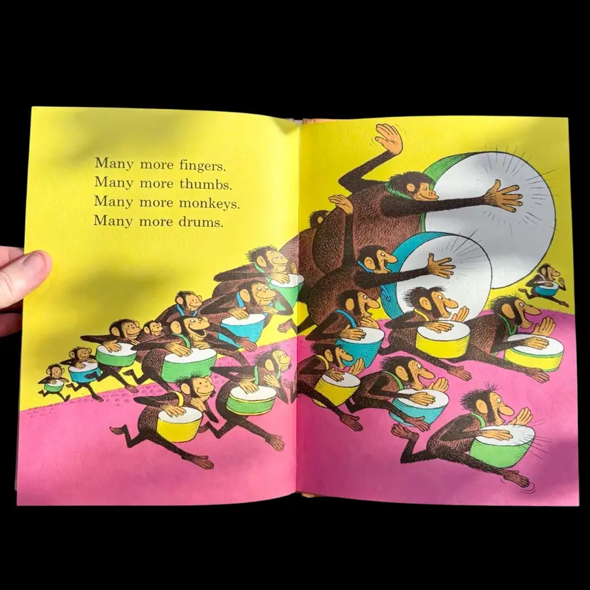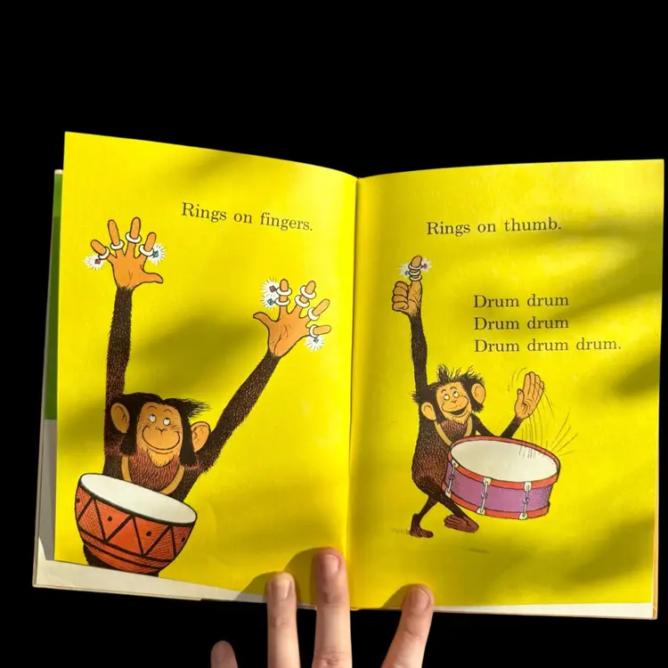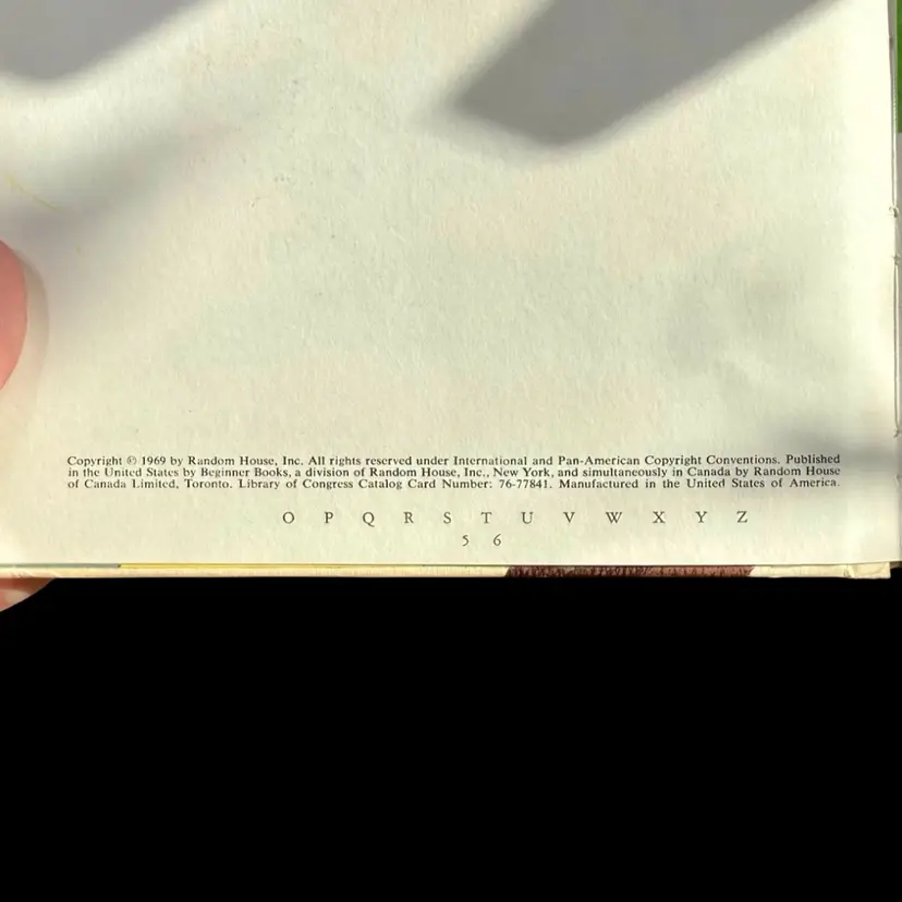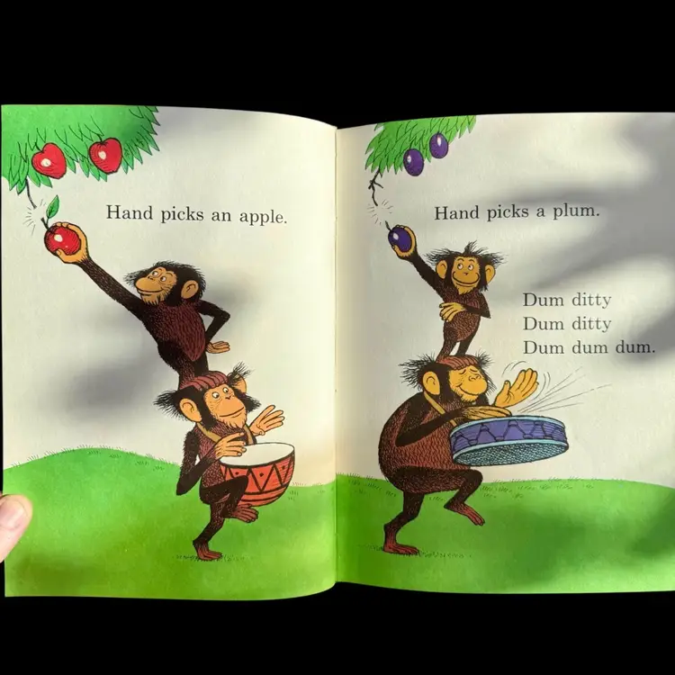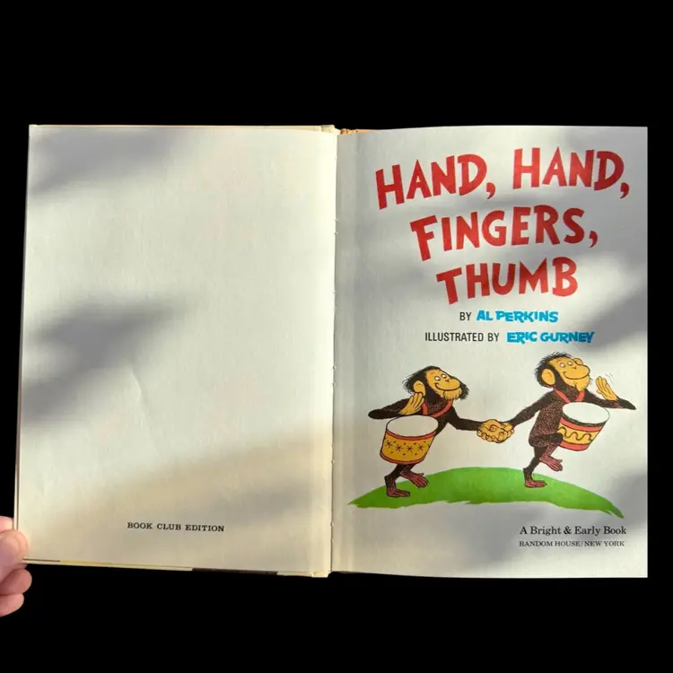6.75"x9.25". 1969 Dr. Seuss BOOK CLUB EDITION of “HAND HAND FINGERS THUMB”. In good vintage/used condition overall. Cover has PURPLE/blue disocloration, pribably some sort of crayon material, and some minor wear/scuffing consistent with age. Please check photos thoroughly.